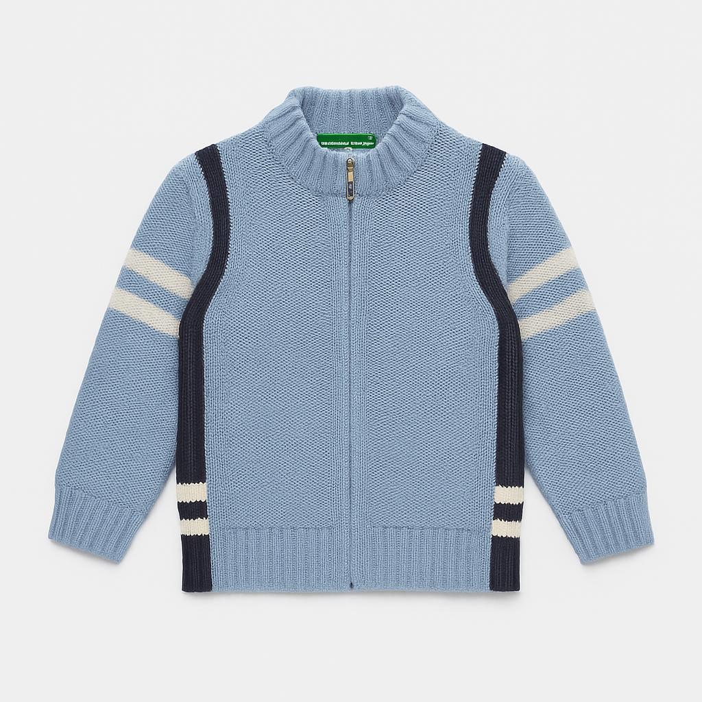 Questo cardigan azzurro farà sicuramente innamorare i piccoli esploratori del tuo guardaroba! Realizzato in un caldo e morbido tessuto, presenta dettagli marittimi con le strisce a contrasto in blu scuro e bianco, che aggiungono un tocco sportivo e trendy. La chiusura con zip e il colletto alto garantiscono comfort e calore nelle fresche giornate autunnali. Le maniche lunghe offrono protezione durante le avventure all'aperto o semplicemente per coccolarsi a casa. Nonostante sia un capo usato, si presenta in ottime condizioni, pronto per accompagnare ogni passo dei piccoli! Un must-have per ogni giovane stilista!