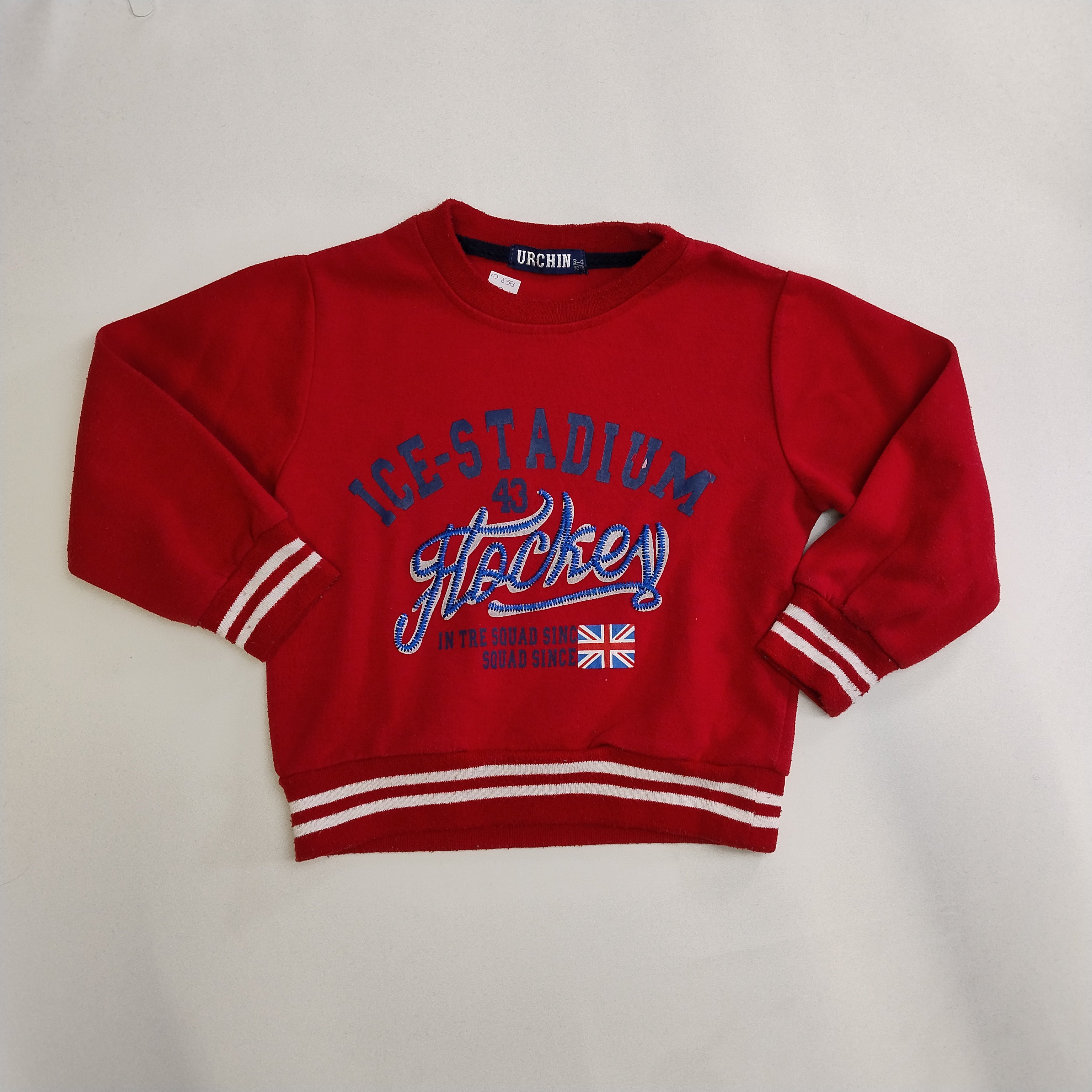 Questo vivace pullover rosso firmato Urchin è la scelta perfetta per i piccoli amanti del comfort e dello stile! Con un design ispirato allo sport, presenta una scritta accattivante “ICE STADIUM” ricamata in blu e argento, che cattura l'attenzione. Le maniche a sbuffo e le strisce bianche sui polsini aggiungono un tocco trendy, rendendolo ideale per avventure invernali. Nonostante sia un capo usato, si presenta in ottime condizioni, pronto per accompagnare i tuoi bimbi nelle loro giornate di gioco. Un must-have per un look sporty e sempre alla moda!