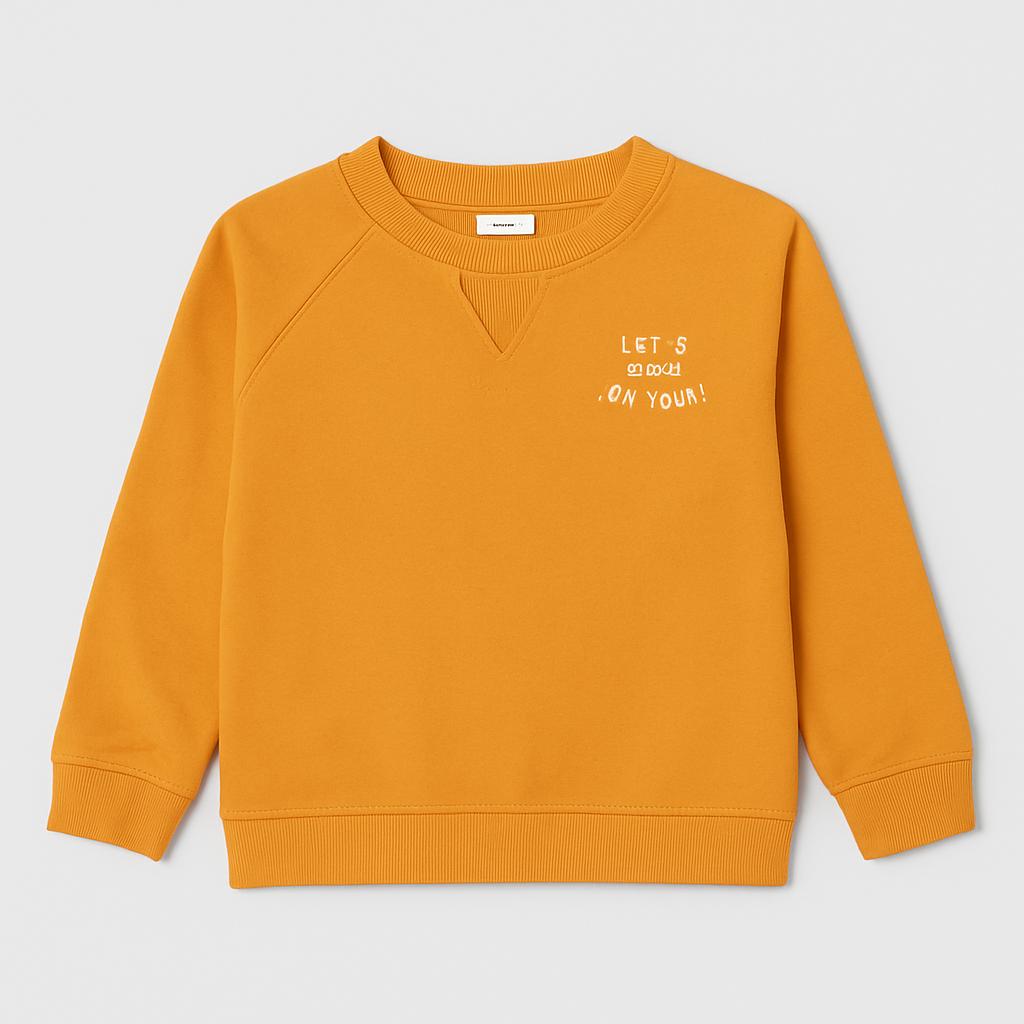 Questo splendido maglione arancione di marca Zalando è perfetto per le piccole creature piene di energia! Realizzato in un morbido cotone, offre comfort e calore durante le fresche giornate. La scritta “LET'S HAVE FUN TODAY” sul petto aggiunge un tocco allegro e invogliante, perfetto per incoraggiare il divertimento e il gioco. Le maniche lunghe e l'orlo a costine garantiscono una vestibilità comoda e facile da indossare. Anche se si tratta di un capo usato, si presenta in ottime condizioni, pronto per essere abbinato a jeans o leggings per un look casual e alla moda!