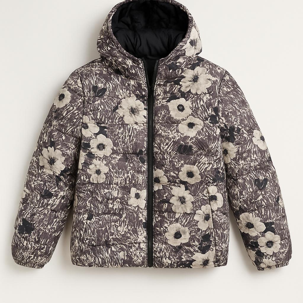 Questa giacca piumino per bambini è un vero gioiellino! Con un delizioso motivo floreale in bianco e nero, offre un look elegante e giocoso per le giornate più fredde. Realizzata in un tessuto leggero e caldo, protegge bene dai venti invernali. La pratica zip frontale e il cappuccio la rendono perfetta per le avventure all’aperto. Anche se è un capo usato, si presenta in ottime condizioni, pronto per accompagnare il tuo piccolo in ogni esplorazione. Un must-have per il guardaroba invernale!