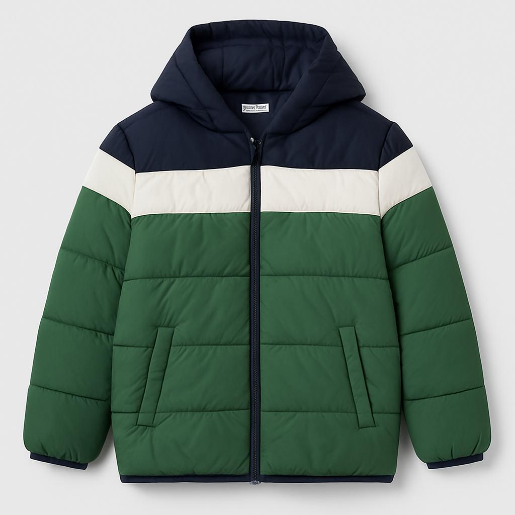 Questo fantastico piumino per bambini combina stile e praticità! La giacca presenta un design sportivo con un'incredibile palette di colori: verde, blu navy e un tocco di bianco. Realizzato in un materiale resistente e caldo, è perfetto per affrontare il freddo invernale. Le ampie tasche garantiscono spazio per riporre piccoli tesori, mentre il cappuccio offre protezione aggiuntiva contro il vento. Nonostante sia un capo usato, si trova in ottime condizioni ed è pronto a diventare il compagno ideale per le avventure all'aria aperta dei piccoli! Un must-have per ogni bambino che ama giocare all'aperto!