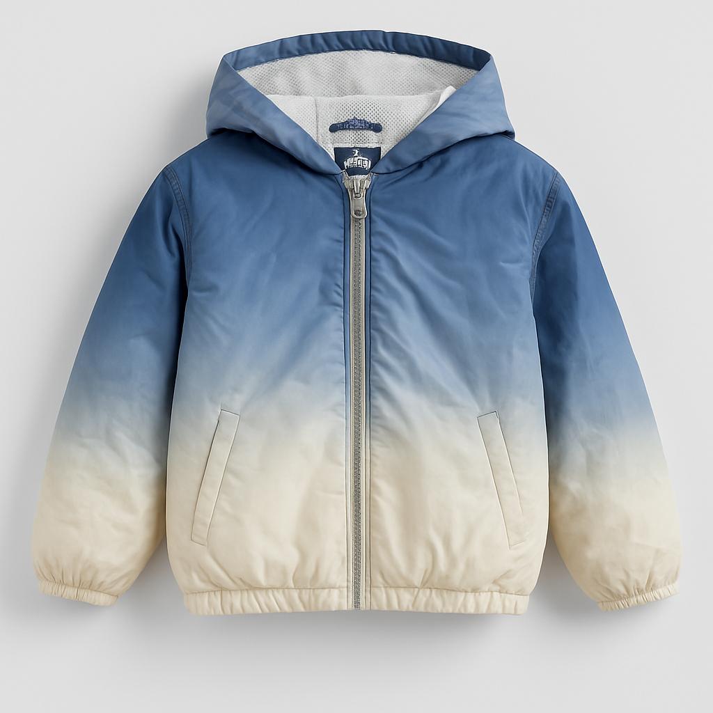 Questa giacca a vento è il capo perfetto per le piccole esploratrici! Con un affascinante design degradé che sfuma dal blu al bianco, è sia moderna che funzionale. Realizzata in un materiale leggero, è ideale per le giornate ventose o le serate fresche. La praticità della cerniera anteriore e il cappuccio forniscono ulteriore protezione, mentre il taglio corto conferisce un tocco trendy. Nonostante sia un capo usato, si presenta in ottime condizioni, pronta per accompagnare tante avventure all'aperto! Un must-have per chi ama stile e comodità!