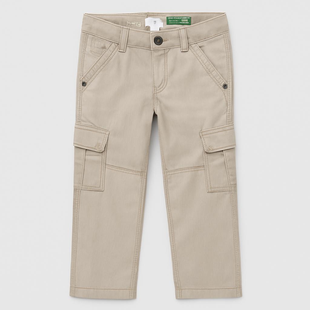 Scopri questi fantastici pantaloni cargo beige, un capo versatile per il guardaroba dei tuoi bambini! Realizzati in un tessuto resistente, questi pantaloni offrono comodità e libertà di movimento. I dettagli a righe e le tasche laterali aggiungono un tocco pratico e stiloso, perfetto per piccole avventure all'aperto. Nonostante siano usati, si presentano in ottime condizioni e pronti a un nuovo capitolo di giochi e scoperte. Ideali per abbinamenti casual o per un look più curato, sono un must-have per ogni bambino in crescita!