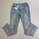 Questi adorabili jeans in denim chiaro sono perfetti per le piccole stelle! Decorati con delicati ricami a fiorellini bianchi, aggiungono un tocco di freschezza e allegria a qualsiasi outfit. Il taglio slim e il bordo sfrangiato li rendono trendy e moderni, ideali per giochi all'aperto o passeggiate in famiglia. Con un comodo elastico in vita, sono facili da indossare e da togliere. Nonostante siano usati, sono in ottime condizioni, pronti per accompagnare le avventure quotidiane della tua bimba! Un must-have per ogni piccola amante della moda!