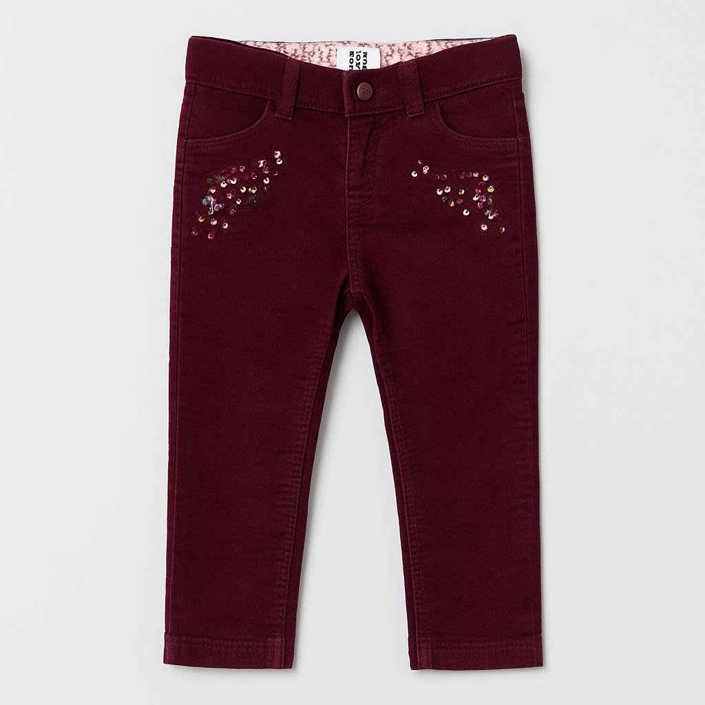 Questi deliziosi pantaloni in velluto a coste di colore bordeaux sono un'aggiunta perfetta al guardaroba della tua piccola! Decorati con graziosi ricami e piccole perline, donano un tocco di eleganza a ogni outfit. Il tessuto morbido e caldo è ideale per le giornate autunnali, mentre il taglio comodo garantisce libertà di movimento per giocare e divertirsi. Grazie all'interno impreziosito da un motivo floreale, questi pantaloni rendono ogni giornata speciale. Nonostante siano usati, sono in ottime condizioni, pronti per nuove avventure!