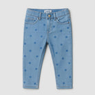 Questi adorabili jeans in denim chiaro sono perfetti per le piccole esploratrici! Caratterizzati da un delizioso ricamo di pois blu, aggiungono un tocco di freschezza al guardaroba. La vestibilità slim e il girovita regolabile garantiscono comfort e praticità durante le avventure quotidiane. Indossali con una maglietta colorata per un look casual e trendy, ideali per ogni occasione, dai giochi al parco alle uscite in famiglia. Nonostante siano usati, sono in ottime condizioni e pronti per vivere nuove avventure con la tua piccola!