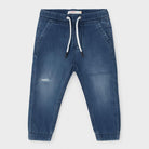 Questi fantastici pantaloni in denim sono l'aggiunta perfetta al guardaroba del tuo bambino! Con un classico colore blu scuro e un design moderno, hanno un look casual e versatile. Le coulisse in vita assicurano una vestibilità comoda, mentre i polsini elasticizzati alle caviglie conferiscono un tocco trendy. Leggeri e resistenti, sono ideali per le avventure all'aperto o per affrontare una giornata di giochi. Nonostante siano usati, si presentano in ottime condizioni e porteranno un sorriso sul volto del tuo piccolo! Un must-have per ogni giovane esploratore!