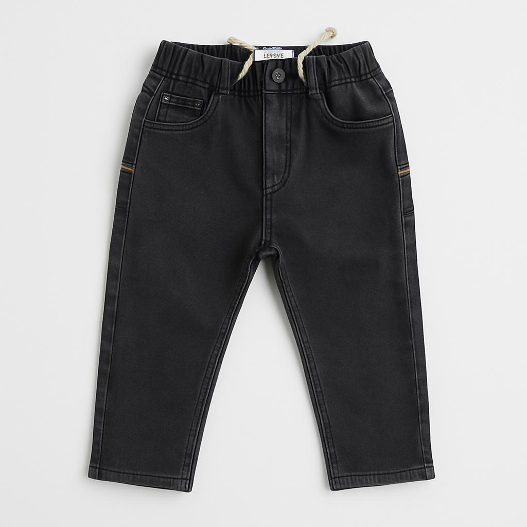 Questi jeans per bambini sono un must-have versatile e alla moda per il guardaroba del tuo piccolo! Realizzati in denim morbido e resistente, presentano un elegante colore grigio scuro che si abbina facilmente a qualsiasi look. La vita elasticizzata con cordoncino regolabile garantisce una vestibilità comoda e sicura durante tutte le avventure quotidiane.
