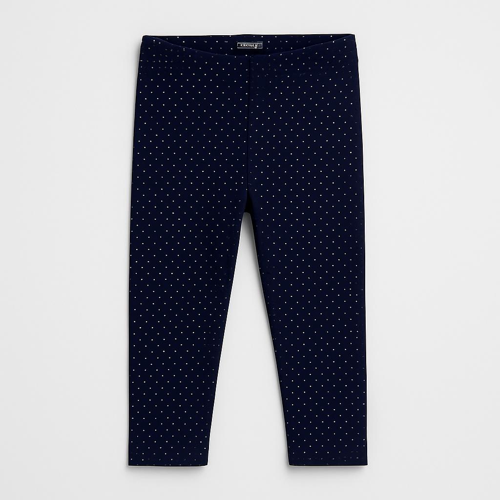Questi adorabili leggings blu scuro con delicati pois bianchi sono un capo versatile e trendy per la tua piccola! Realizzati in un morbido tessuto elasticizzato, garantiscono comfort e libertà di movimento in ogni avventura. La vita alta e l'ottimo fit li rendono perfetti sia per una giornata al parco che per un’uscita con gli amici. Nonostante siano usati, i leggings si presentano in ottime condizioni e possono facilmente arricchire il guardaroba di ogni bambina. Un vero must-have per galline chic e dinamiche!
