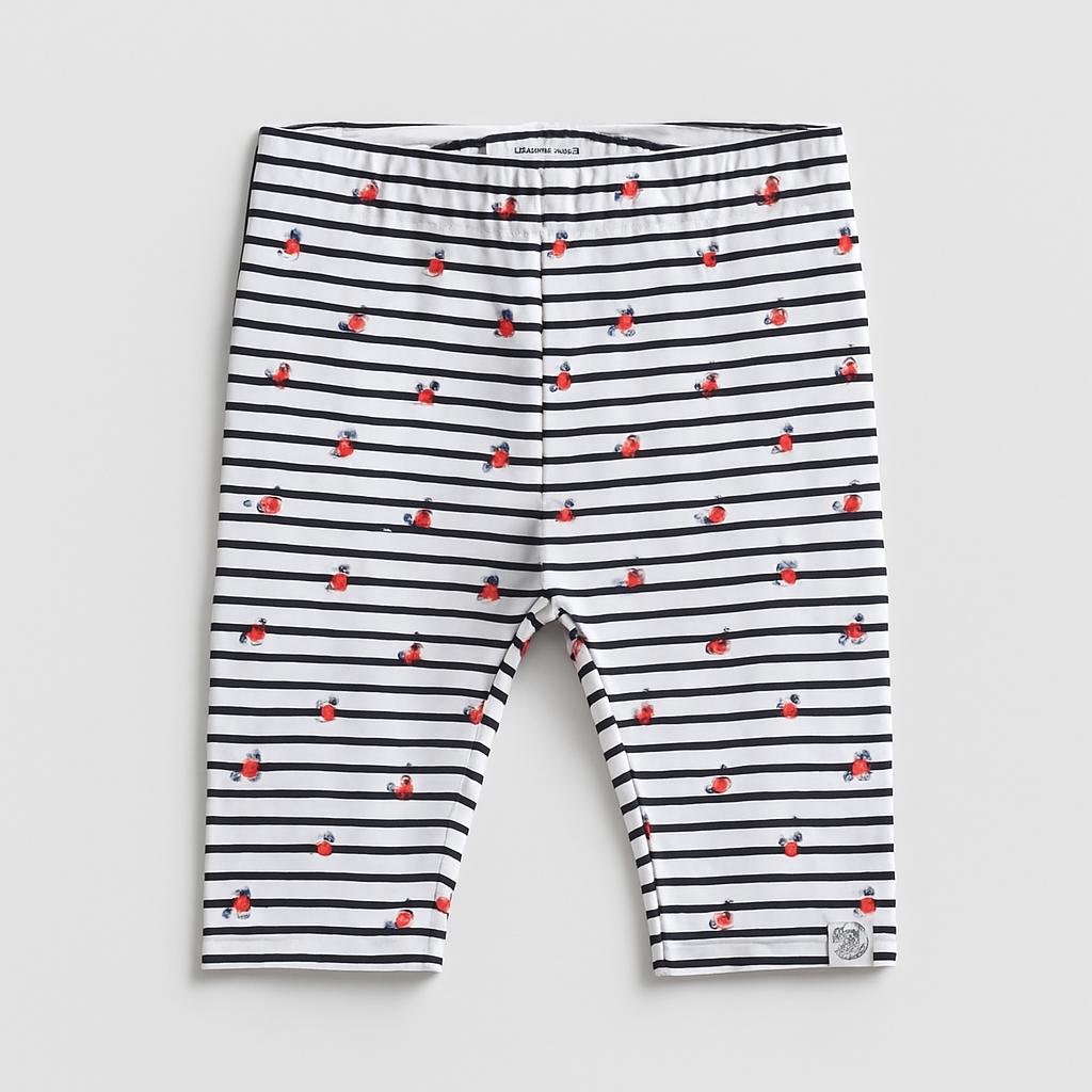 Questi adorabili leggings a righe accompagneranno le piccole in tutte le loro avventure! Realizzati in un morbido cotone, presentano un vivace motivo di righe bianche e nere decorate con dolci fiori rossi. La vita elasticizzata garantisce comfort e facilità nei movimenti, rendendoli perfetti per giocare o esplorare. Nonostante siano usati, si trovano in ottime condizioni e sono ideali per creare outfit casual e colorati. Un must-have da avere nel guardaroba delle piccole fashioniste!
