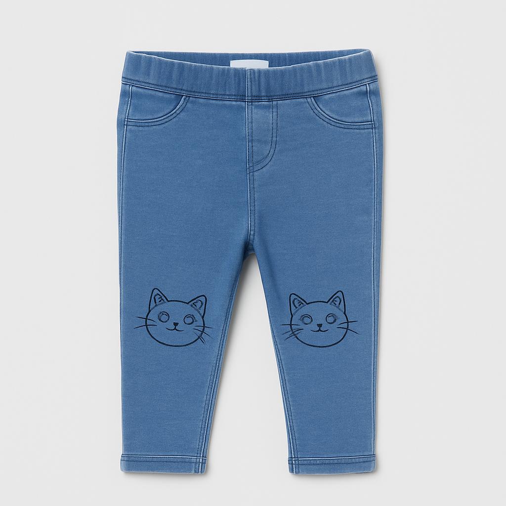 Questi adorabili leggings denim faranno felice ogni piccola amante dei gatti! Realizzati in un comodo tessuto elasticizzato, sono perfetti per giocare e correre. La delicata stampa di due faccine di gattini sui ginocchi aggiunge un tocco di dolcezza e allegria. Il design a vita alta assicura una vestibilità sicura e confortevole, mentre il taglio slim permette grande libertà di movimento. Nonostante siano usati, sono in ottime condizioni e pronti a vivere nuove avventure. Un capo brillante e versatile, ideale per ogni outfit!