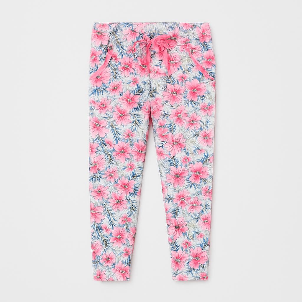 Questi adorabili leggings floreali sono il sogno di ogni piccola amante della natura! Con un vivace motivo di fiori rosa e blu, aggiungono un tocco di freschezza e allegria a qualsiasi outfit. Realizzati in un tessuto morbido e leggero, garantiscono comfort durante tutto il giorno, perfetti per le avventure estive. L'elastico in vita assicura una vestibilità comoda, mentre le caviglie elasticizzate donano un tocco trendy. Nonostante siano capi usati, si presentano in ottime condizioni, pronti a far brillare il guardaroba della tua piccola fashionista! Un must-have per giocare e divertirsi con stile!