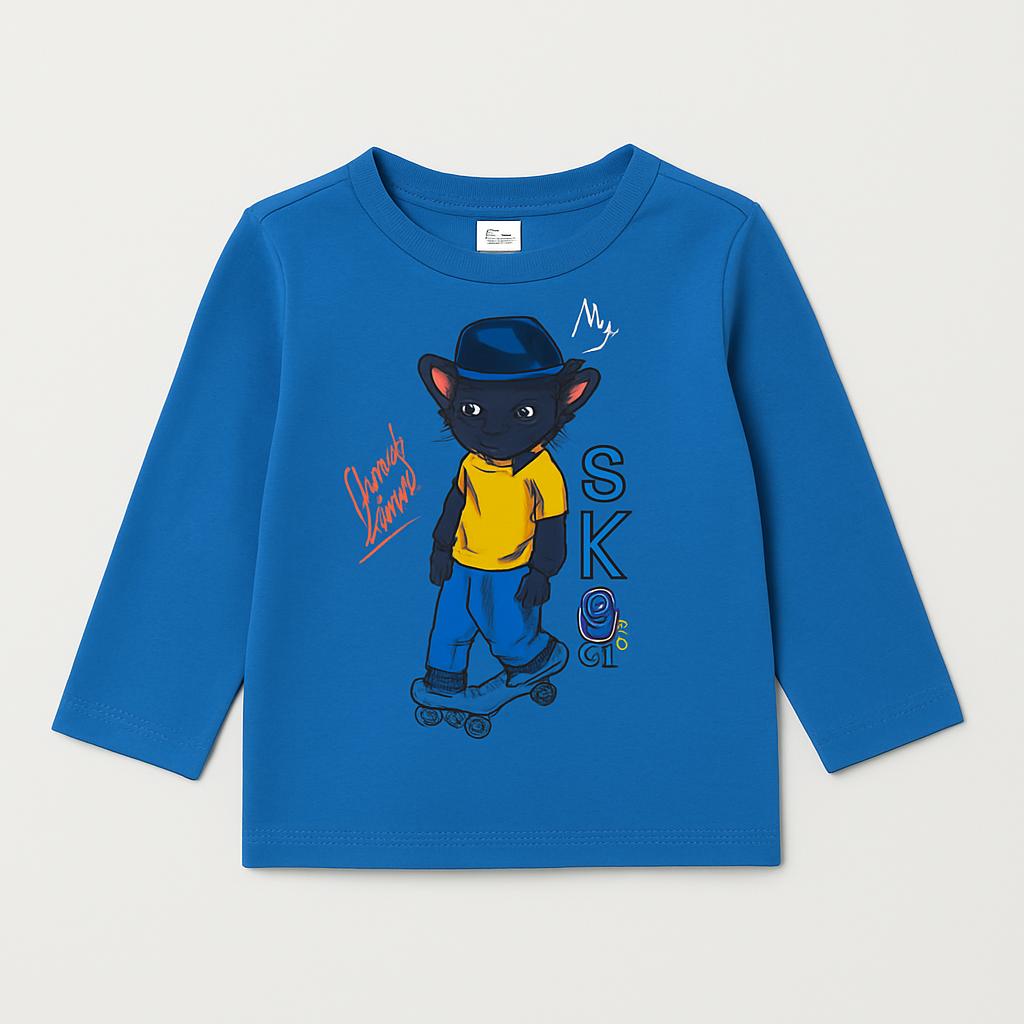 Questa simpatica maglietta a maniche lunghe in un vivace blu sarà il capo perfetto per il tuo piccolo! Realizzata in morbido cotone, offre comfort per tutto il giorno. Sul fronte, un adorabile grafico di un cagnolino fashionista con occhiali e skate porta un tocco di divertimento e fantasia. I dettagli colorati rendono questo pezzo unico e accattivante, ideale per le avventure quotidiane o per un look casual e pieno di personalità. Anche se usata, è in ottime condizioni e pronta per accompagnare il tuo bambino in nuove esplorazioni. Un must-have per i piccoli stilosi!