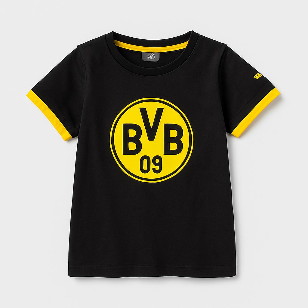 Questa T-shirt nera di marca Borussia Dortmund è perfetta per i piccoli tifosi! Realizzata in morbido cotone, offre un look sporty e trendy grazie al logo BVB 09 stampato nel vivace cerchio giallo. Le maniche corte con dettagli gialli donano un tocco di allegria, rendendola ideale per le giornate di gioco o per un'uscita con gli amici. Nonostante sia un capo usato, è in ottime condizioni e pronta a far tiferare il tuo bambino con stile! Un must per ogni giovane appassionato di calcio!