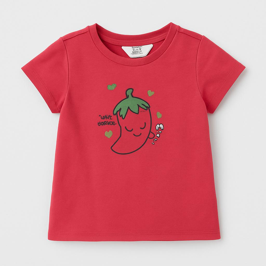 Questa adorabile t-shirt rossa è perfetta per le piccole chef in erba! Con un simpatico design di un peperoncino sorridente e il testo "Hot Stuff", aggiunge un tocco di vivacità al guardaroba dei bambini. Realizzata in morbido cotone, garantisce comfort e libertà di movimento durante le avventure quotidiane. Le sue maniche corte la rendono ideale per le giornate estive, giochi al parco o semplicemente per un look casual e divertente. Anche se è un capo usato, si presenta in ottime condizioni, pronto a portare un po' di pepe nel look della tua piccola!