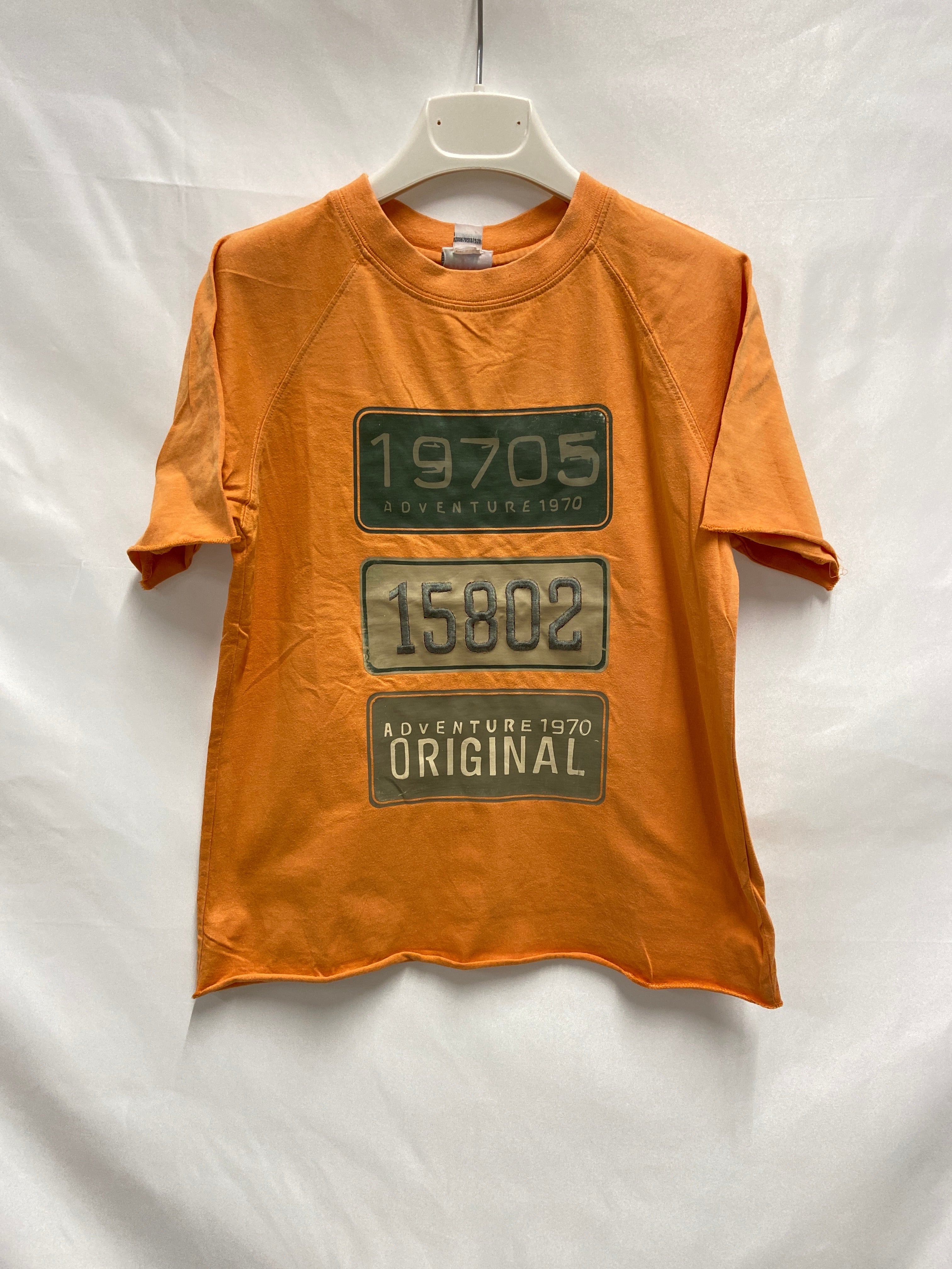 Questa vivace t-shirt arancione è un vero invito all'avventura! Realizzata in morbido cotone, offre comfort e freschezza per le giornate di gioco. I sorprendenti dettagli frontali, con numeri e scritte che richiamano il tema "Adventure 1970", aggiungono un tocco di originalità e spirito di esplorazione. Le maniche corte la rendono perfetta per le attività all'aria aperta o per un look casual e divertente. Anche se è un capo usato, si presenta in ottime condizioni, pronta per essere indossata da piccoli esploratori con tanto stile!