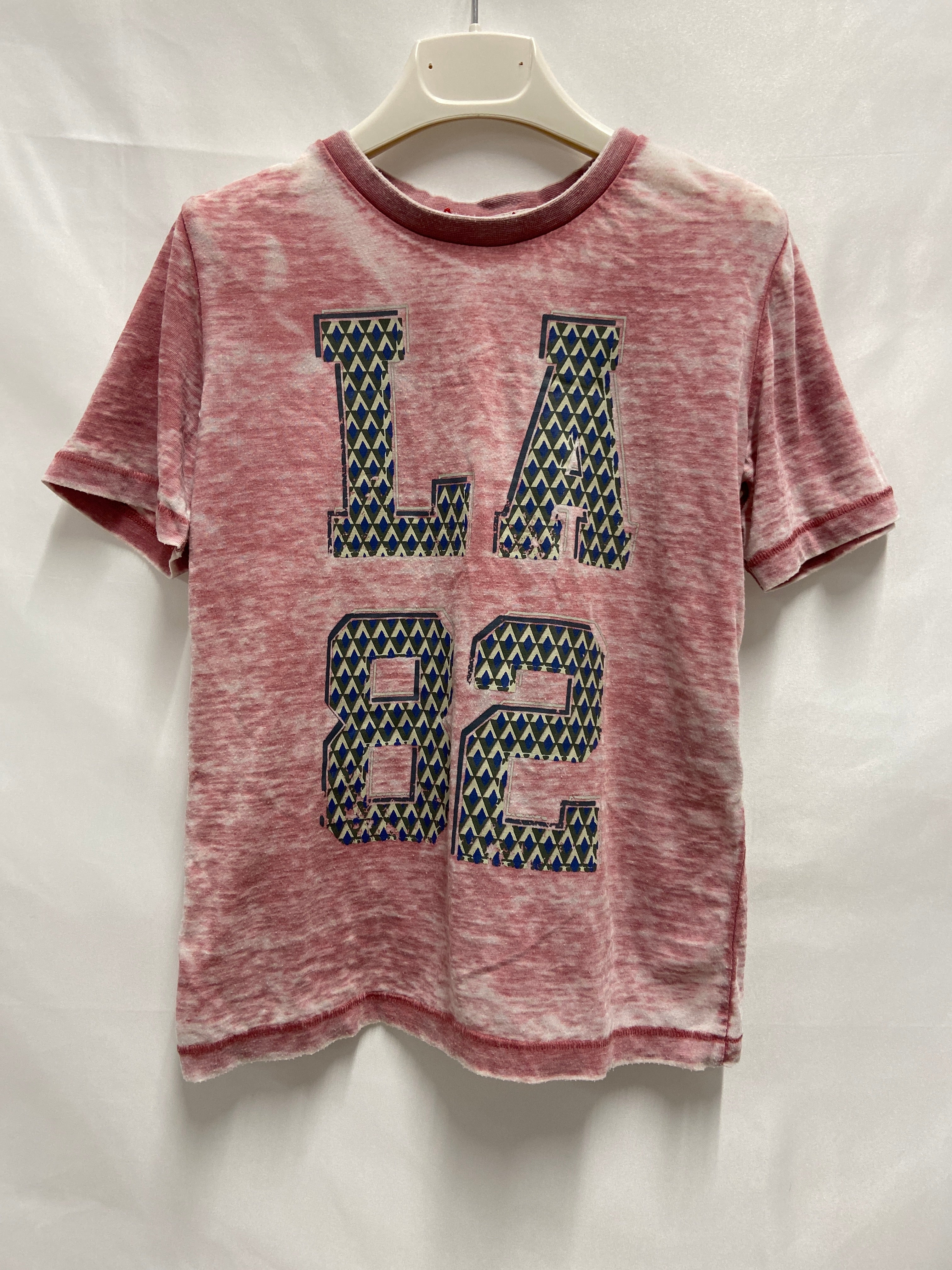 Questa originale t-shirt in tinta rossa è perfetta per i piccoli amanti dello stile casual! Con una vivace stampa "LA 82" sul fronte, aggiunge un tocco urbano e trendy al guardaroba. Il tessuto morbido e leggero garantisce comfort durante tutta la giornata, rendendola ideale per giochi e avventure. Le maniche corte e il taglio moderno la rendono perfetta per le giornate primaverili ed estive. Nonostante il suo passato, è in buone condizioni, pronta a regalare gioia e stile al tuo bambino! Un capo immancabile per ogni piccolo trendsetter!