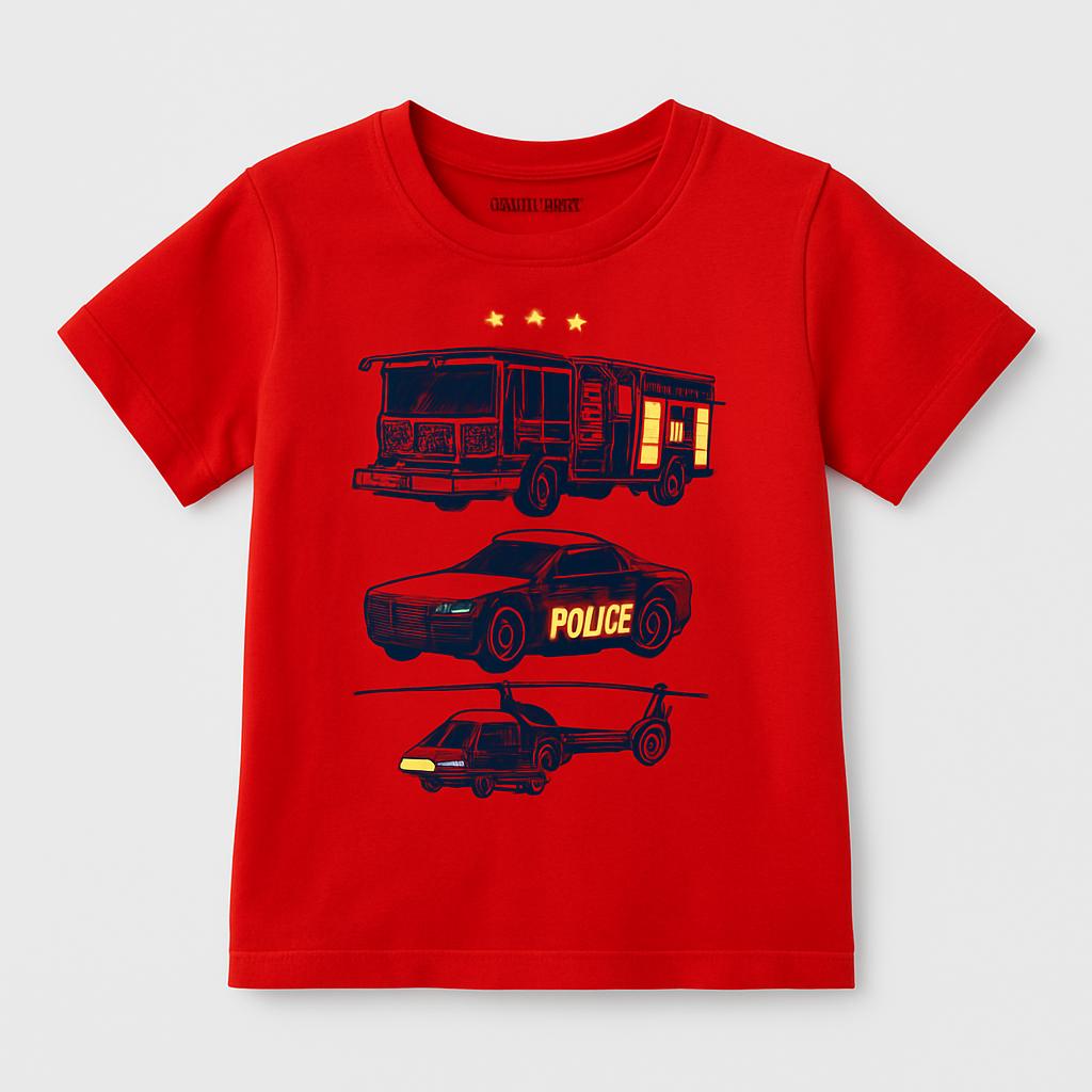 Questa vivace t-shirt rossa sarà il sogno di ogni piccolo amante delle avventure! Realizzata in morbido cotone, presenta un divertente design che ritrae un’automobile della polizia, un elicottero e un camion dei pompieri, perfetto per stimolare la fantasia. Il colore brillante la rende ideale per le giornate di gioco e le attività all’aperto. Anche se è un capo usato, è in ottime condizioni, pronto a essere indossato da un piccolo eroe in azione! Un'aggiunta fantastica per il guardaroba dei bambini, per un look divertente e avventuroso!