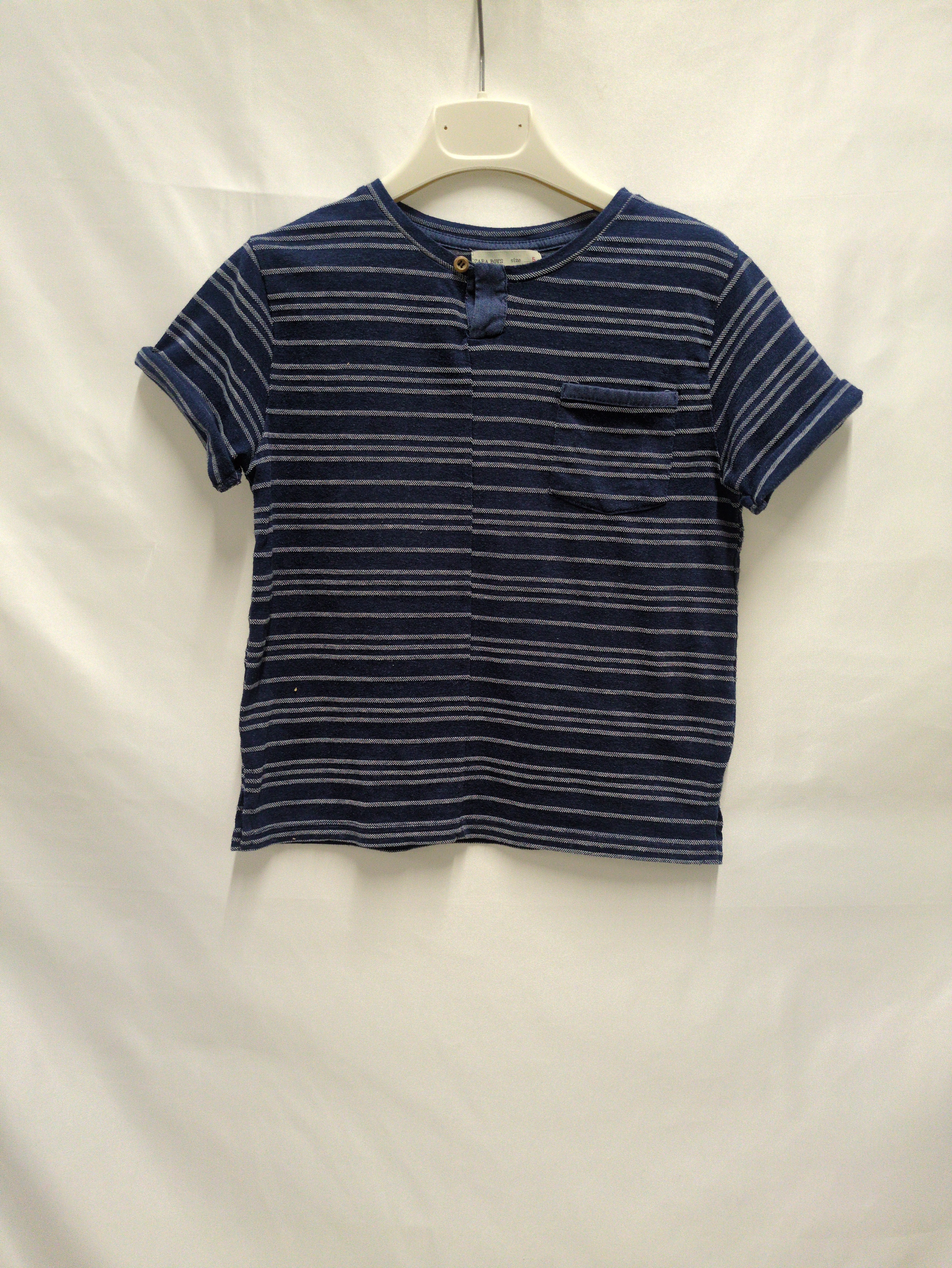 Questo adorabile t-shirt di colore blu navy a righe è perfetta per il guardaroba dei tuoi piccoli! Realizzata in un morbido cotone, è caratterizzata da un design semplice ma giocoso, con righe bianche che aggiungono un tocco di freschezza. Il colletto a crew con bottone e la taschino sul petto rendono questo capo ancora più trendy e stiloso. Le maniche corte garantiscono comfort e libertà di movimento, ideali per le avventure estive. Nonostante sia un pezzo usato, è in ottime condizioni, pronto per accompagnare il tuo bambino in ogni momento di gioco e svago! Un must per i piccoli amanti della moda!