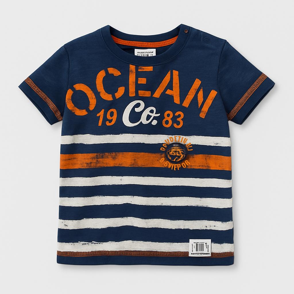 Aggiungi un tocco marittimo al guardaroba del tuo bambino con questa fantastica t-shirt di marca Ocean! Realizzata in un cotone morbido e traspirante, presenta una vivace combinazione di righe blu navy e bianche, arricchita da dettagli in arancione. La scritta "OCEAN" in grandi lettere è perfetta per i piccoli amanti dell'avventura! Le maniche a righe e i bottoncini sulla spalla ne facilitano l'indossamento, rendendola pratica per ogni occasione. Nonostante sia un capo usato, è in ottimo stato e pronto per accompagnare il tuo bimbo nelle sue esplorazioni estive! Una scelta ideale per un look casual e divertente!