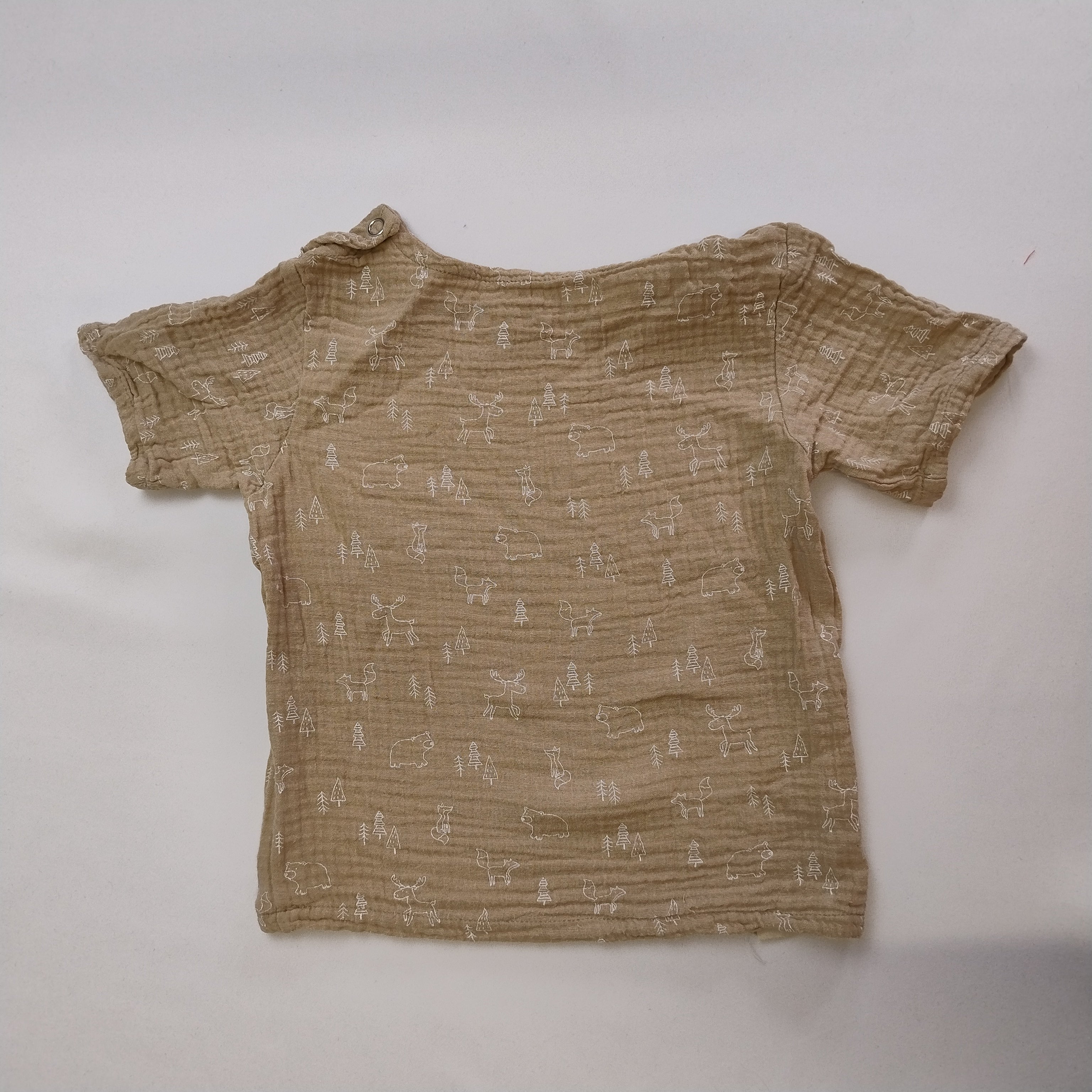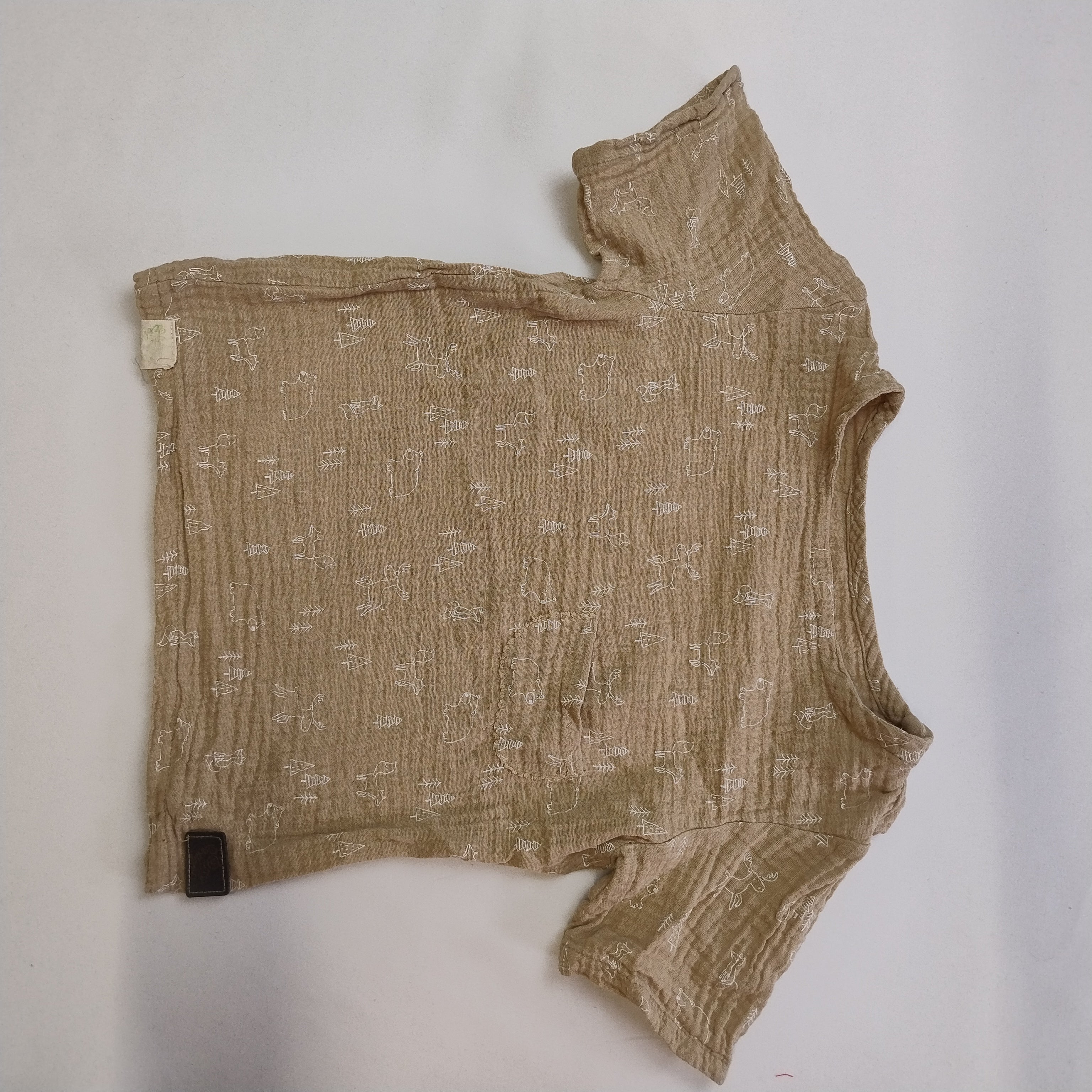 Questa adorabile t-shirt beige è perfetta per i piccoli esploratori! Realizzata in un morbido cotone, presenta un delicato motivo di piccoli disegni bianchi che la rendono unica e affascinante. Il taglio leggero e le maniche corte la rendono ideale per la primavera e l'estate, assicurando comfort durante le avventure quotidiane. Un taschino sul davanti aggiunge un tocco di stile e funzionalità. Nonostante sia un capo usato, si presenta in ottime condizioni, pronto a fare breccia nel cuore di ogni bambino. Un must-have per un guardaroba alla moda!
