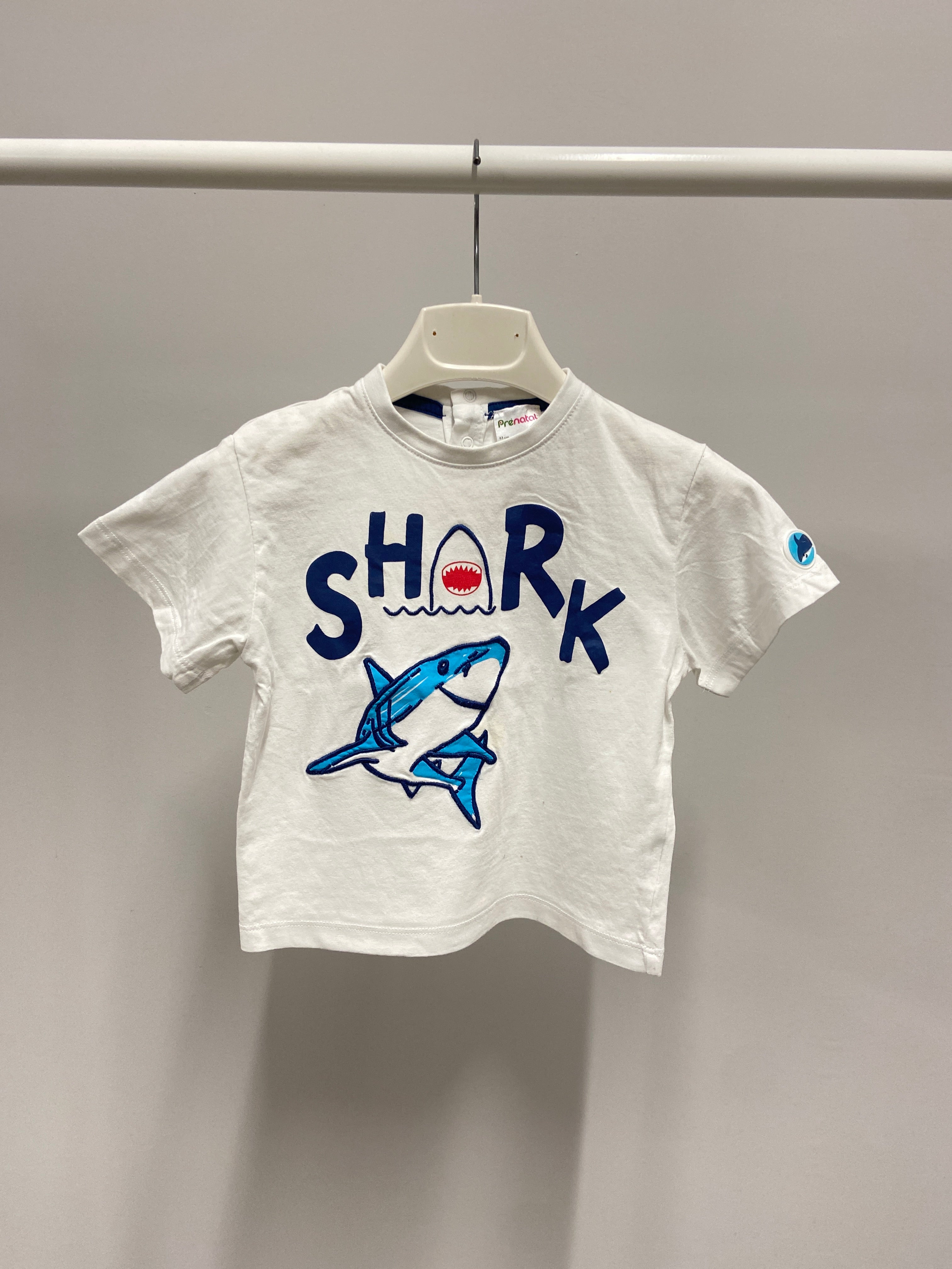 Questa adorabile t-shirt bianca è l'ideale per i piccoli amanti del mare! Con un divertente motivo "SHARK" e un simpatico squalo ricamato, aggiunge un tocco di avventura al guardaroba. Realizzata in morbido cotone, è comoda e leggera, perfetta per le giornate di sole e giochi all'aperto. Anche se usata, si presenta in ottime condizioni, pronta per essere indossata da un giovane esploratore! Un capo irresistibile che farà scoprire il mondo marino con stile!