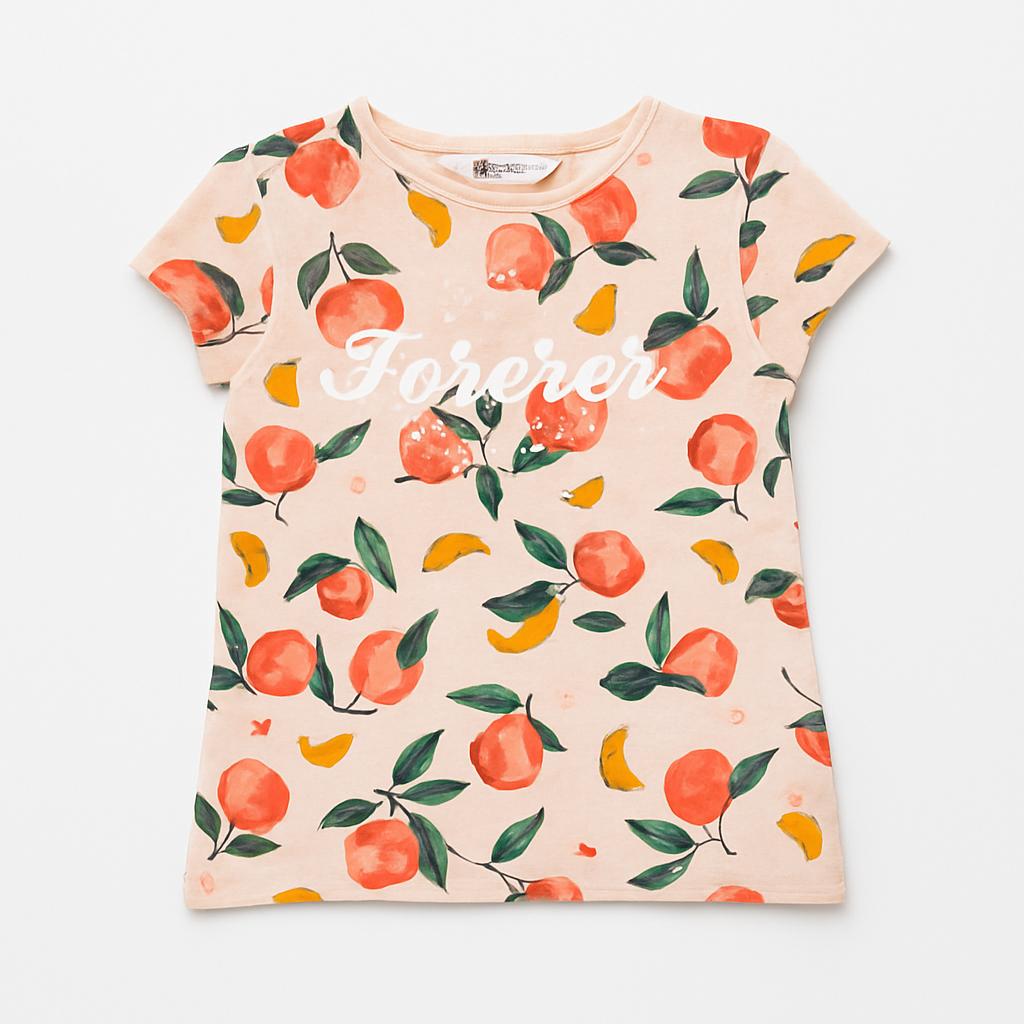 Questa deliziosa t-shirt in cotone presenta un vivace motivo floreale con eleganti pesche e foglie verdi, perfetta per la stagione estiva! Il colore delicato della maglietta si sposa splendidamente con la scritta "Forever" che trasmette un messaggio di gioia e spensieratezza. Le maniche corte e il taglio morbido la rendono comodissima per le avventure quotidiane, dai giochi al parco a un giro in bicicletta. Nonostante rientri tra i capi usati, è in ottime condizioni e porterà un sorriso nel cuore della tua piccola! Una scelta eccellente per aggiungere un tocco di stile al suo guardaroba!
