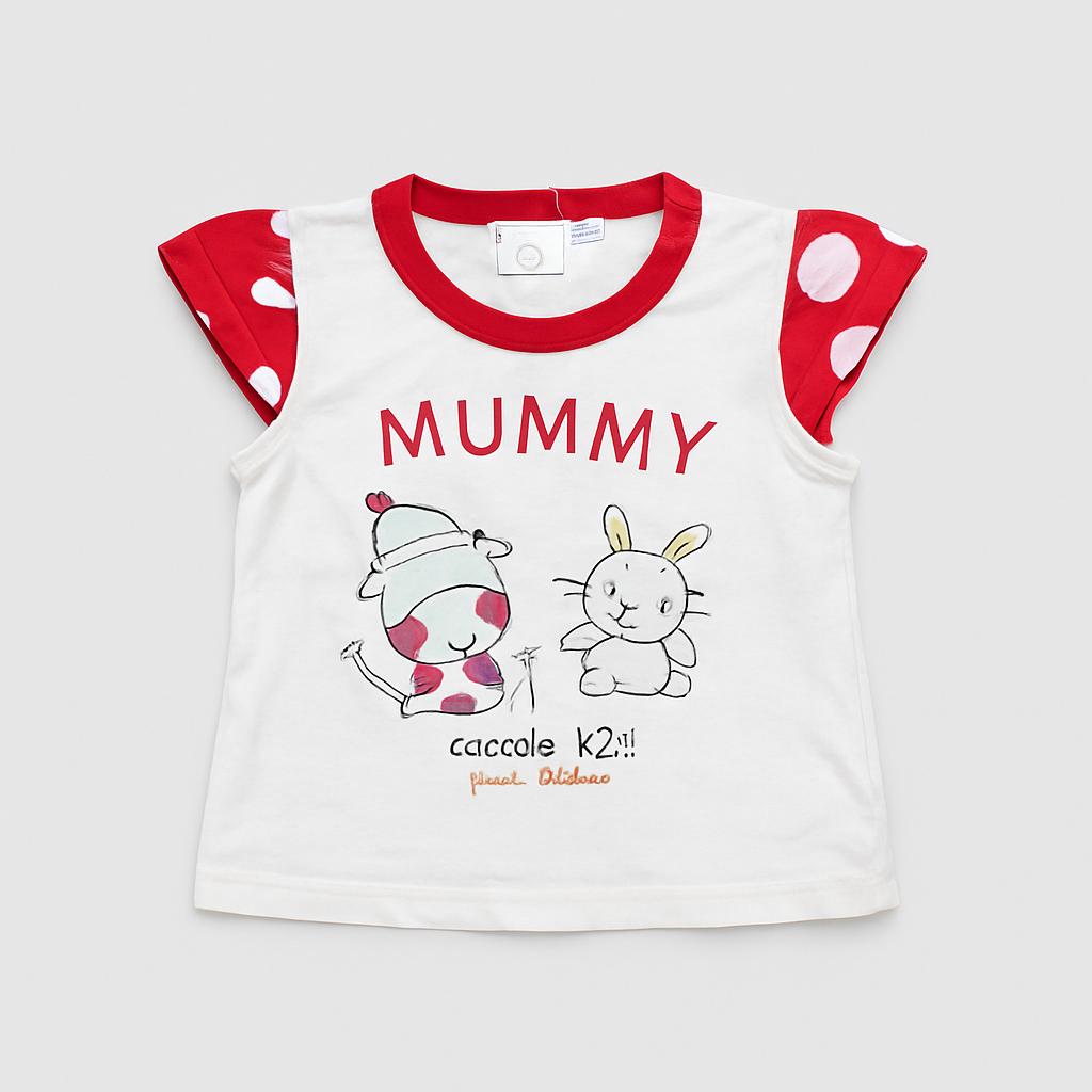 Questa adorabile t-shirt bianca e rossa di Coccole K24 porterà un sorriso sul volto della tua piccola! Con maniche corte a palloncino e simpatici pois rossi, è un capo giocoso e alla moda. Sul fronte, una dolce illustrazione di un’adorabile mamma e il suo cucciolo accompagnata dalla scritta “MUMMY” aggiunge un tocco affettuoso. Perfetta per le giornate di sole, questa maglietta è realizzata in un morbido cotone e si presenta in ottime condizioni. Un must-have per le bambine che amano esprimere il loro stile e la loro personalità!