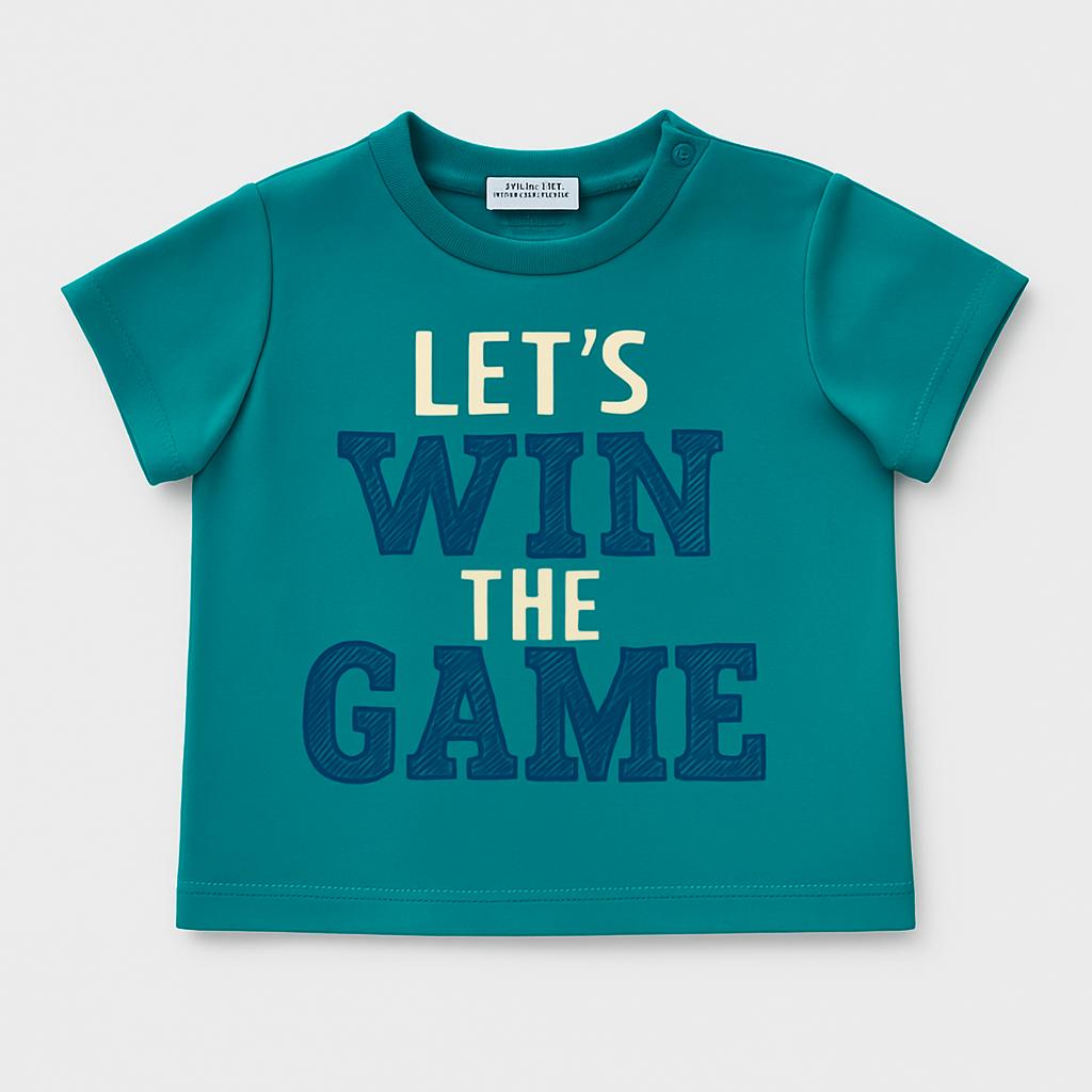 Questa vivace t-shirt verde acqua è perfetta per i piccoli campioni! Con la scritta "LET'S WIN THE GAME" in bold, ispira avventure e giochi all'aria aperta. Realizzata in cotone morbido, offre comfort e libertà di movimento. Le maniche corte la rendono ideale per le giornate più calde. Nonostante qualche segno del tempo, si presenta in buone condizioni e sarà un'aggiunta divertente e sportiva per il guardaroba dei tuoi bimbi! Un capo ideale per i piccoli che amano mostrare il loro spirito vincente!