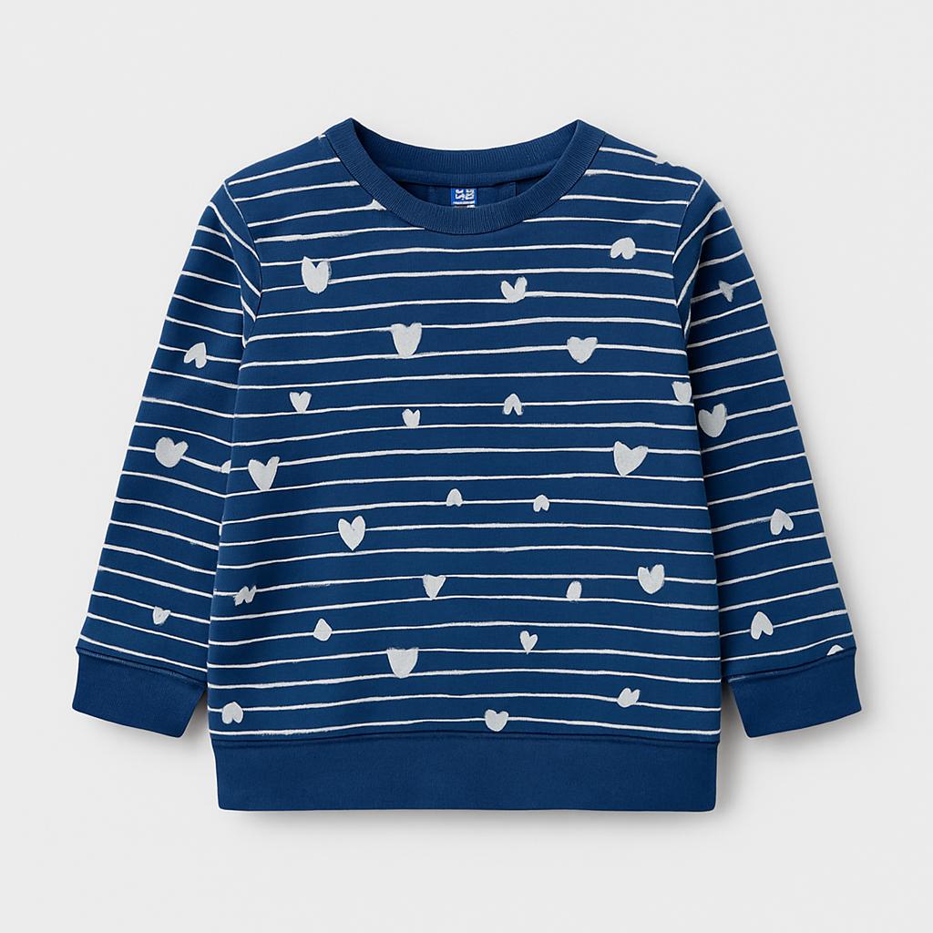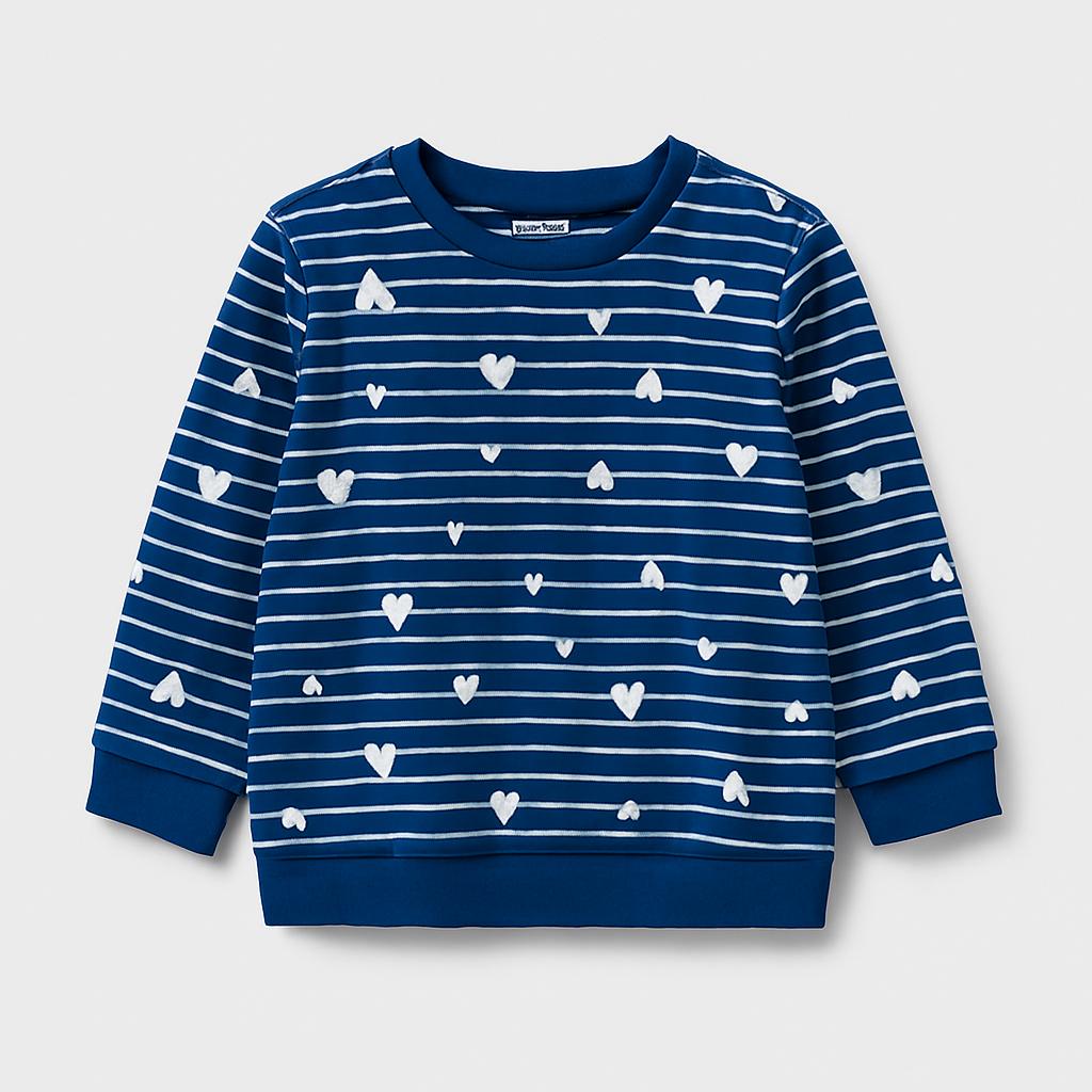 Questo adorabile maglione a righe blu scuro è perfetto per le piccole sognatrici! Con il suo design giocoso e le simpatiche cuoricini bianchi sparse su tutto il tessuto, aggiunge un tocco di dolcezza a qualsiasi outfit. Realizzato in morbido cotone, offre comfort e calore per le giornate più fresche. Le maniche lunghe e l'orlo elastico rendono questo capo pratico e facile da indossare, ideale per giocare in libertà o per una passeggiata con la famiglia. Anche se è un pezzo usato, si presenta in ottime condizioni e porterà sicuramente un sorriso sul viso della tua bambina! Un must-have per il guardaroba invernale!