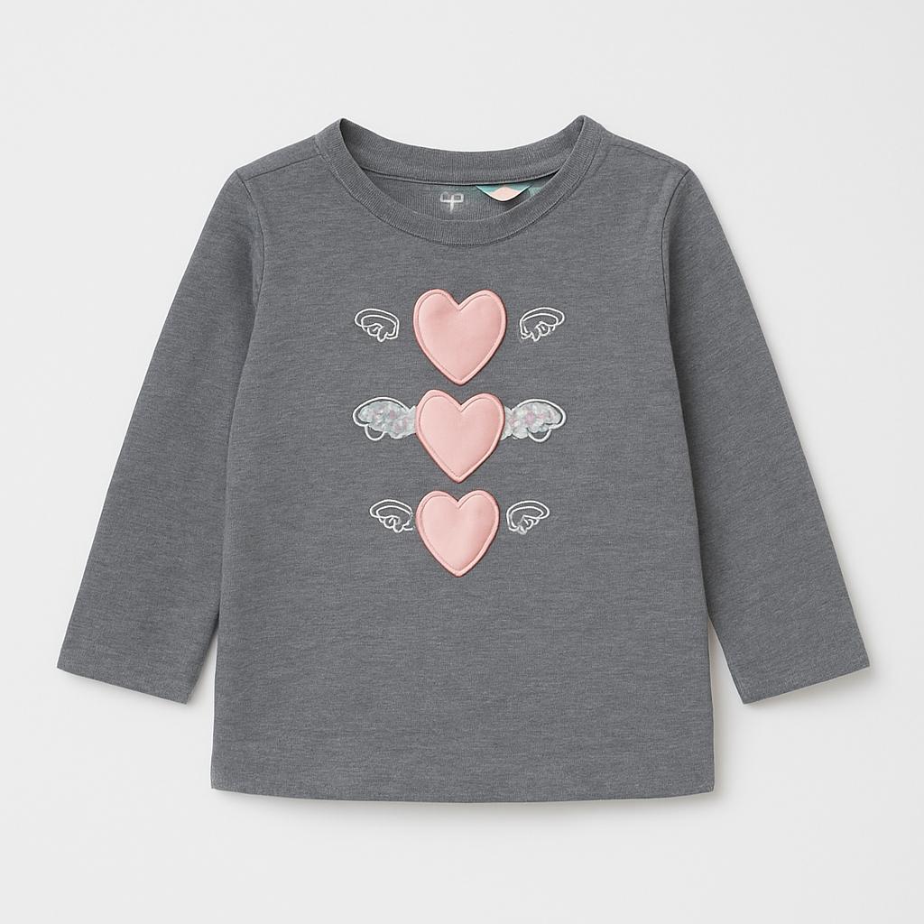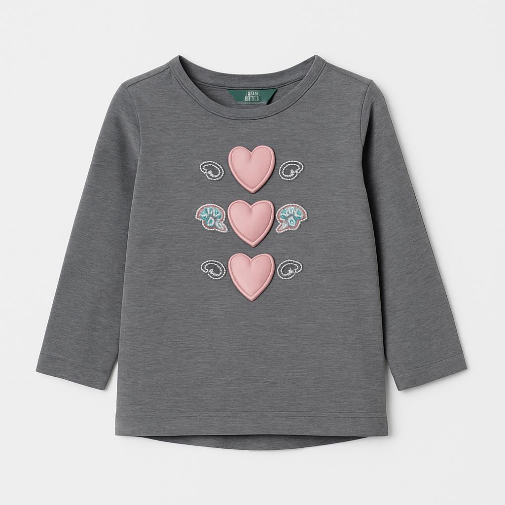 Questa adorabile maglietta grigia a maniche lunghe è perfetta per accompagnare le avventure quotidiane della tua piccola! Realizzata in morbido cotone, offre comfort e un fit ideale. Sul fronte, tre cuori rosa ricamati con delicate ali aggiungono un tocco di dolcezza e fantasia. Ideale per le giornate fresche, è un capo usato che si presenta in ottime condizioni, pronto per un nuovo capitolo nel guardaroba. Perfetta da abbinare a jeans o leggings per un look casual e trendy!