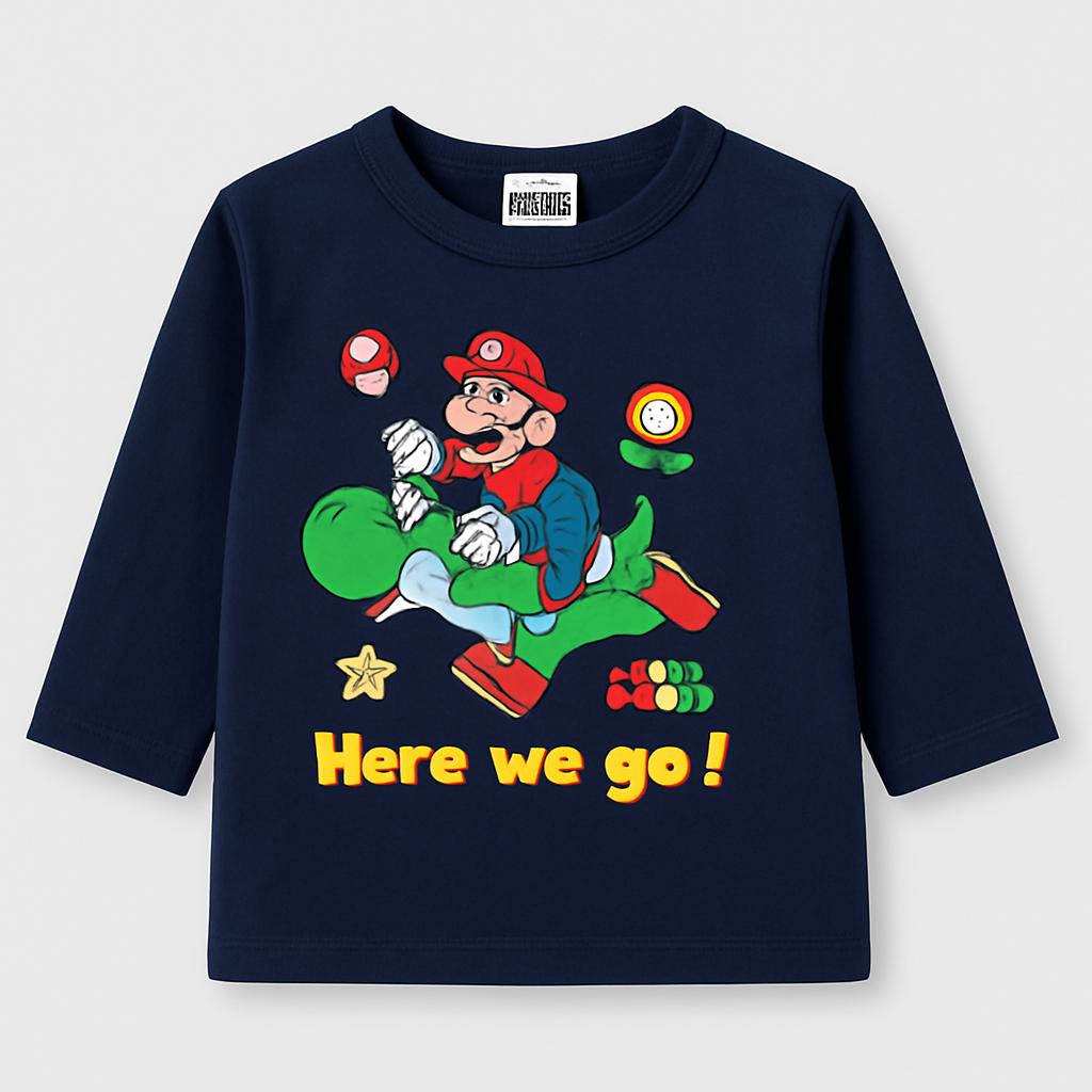 Questo adorabile maglione in blu navy, dedicato agli amanti dei videogiochi, è un vero tesoro! Con un vivace design di Super Mario e Yoshi, farà felice ogni piccolo fan. La scritta "Here we go!" aggiunge un tocco di avventura e spirito giocoso. Le maniche lunghe sono perfette per le giornate fresche, offrendo calore e comfort. Nonostante sia usato, il suo stato è eccellente, pronto per essere indossato da un piccolo esploratore. Un must-have per ogni guardaroba da gioco!