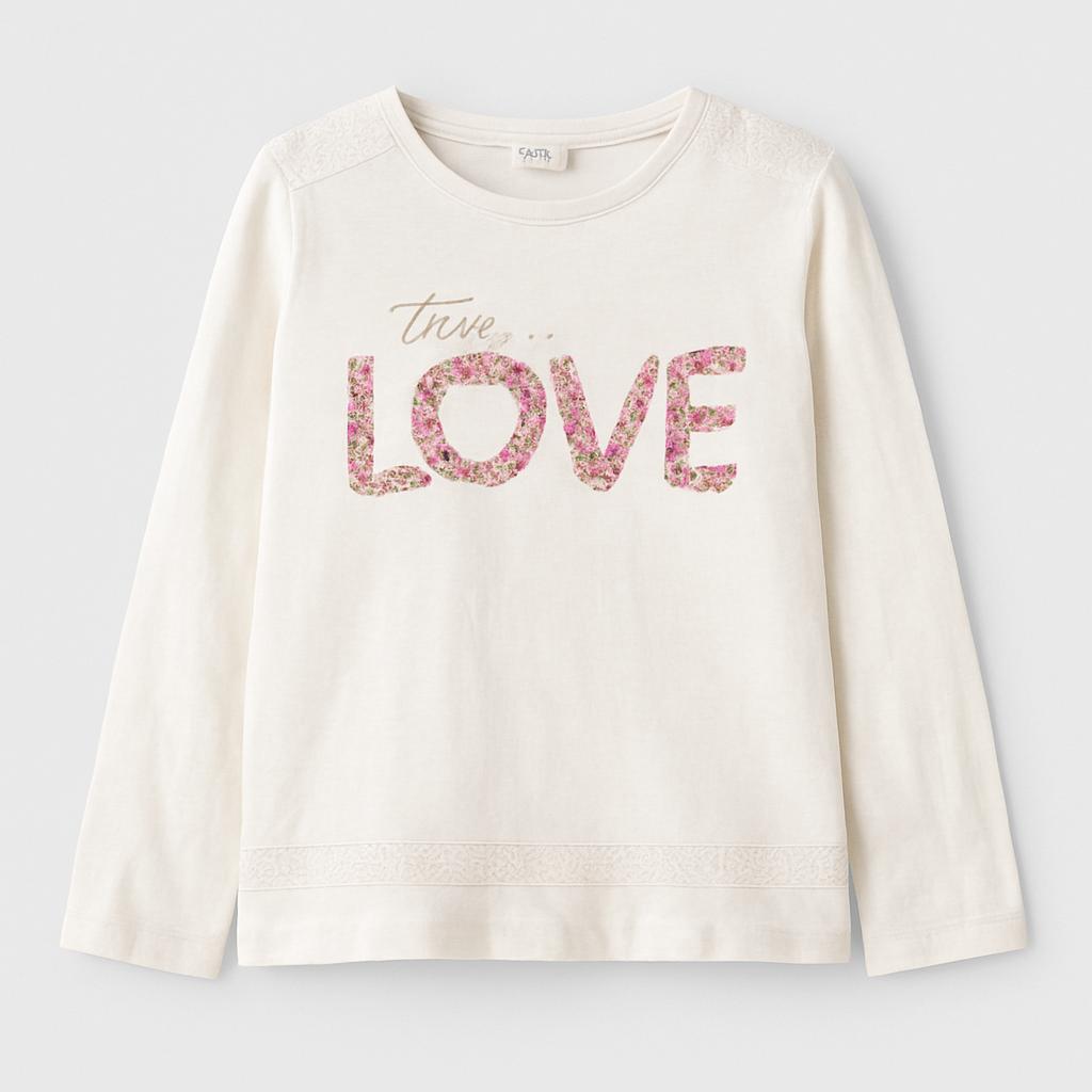 Questa dolcissima maglietta bianca con maniche lunghe è l'essenza della dolcezza! Caratterizzata da una scritta "True Love" incantevole, adornata da fiori colorati che sprigionano gioia. Il tessuto morbido e leggero garantirà comfort alle piccole, mentre i dettagli in pizzo lungo i bordi aggiungono un tocco di eleganza. Perfetta per un look casual o per le occasioni speciali, si adatta a ogni stile ed è in ottime condizioni. Un prezioso alleato per le piccole sognatrici pronte a conquistare il mondo!