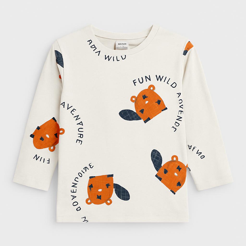 Questa adorabile maglietta a maniche lunghe è perfetta per le piccole avventuriere in cerca di comfort e stile! Realizzata in morbido cotone, presenta un divertente motivo con simpatici castori e la scritta “FUN WILD ADVENTURE” che incoraggia a esplorare il mondo. I toni neutri del tessuto la rendono facile da abbinare a qualsiasi outfit, mentre il taglio comodo permette libertà di movimento durante il gioco. Nonostante sia un capo usato, è in ottime condizioni e pronta a accompagnare nuove avventure! Un must-have per il guardaroba di ogni bambino!
