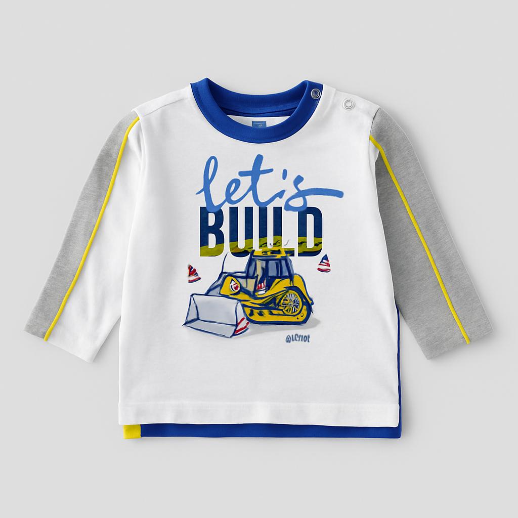 Questo adorabile maglione a maniche lunghe è perfetto per i piccoli costruttori in erba! Realizzato in morbido cotone, sfoggia un vivace design bianco con dettagli grigi e blu. La scritta "LET'S BUILD" in lettere grandi attira l'attenzione, mentre l'immagine di un simpatico escavatore stimola la fantasia dei bambini. Le maniche con dettagli a contrasto e il pratico bottone sulla spalla rendono il capo facile da indossare. Nonostante sia usato, si presenta in ottime condizioni, pronto per accompagnare ogni avventura quotidiana. Un must-have per i piccoli amanti del gioco e della creatività!
