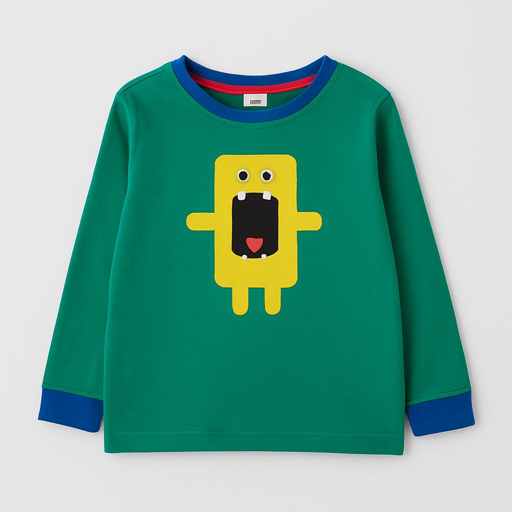 Questa divertente maglietta a maniche lunghe renderà il guardaroba del tuo piccolo un vero spasso! Realizzata in un morbido tessuto verde, presenta un adorabile e simpatico personaggio giallo che sembra proprio divertirsi. Il taglio comodo e le maniche blu aggiungono un tocco di colore e stile. Perfetta per le giornate di gioco o per un look casual, sarà amata dai bambini grazie al suo design giocoso. Anche se è un capo usato, è in ottime condizioni e pronto per nuove avventure! Un must-have per i piccoli esploratori!