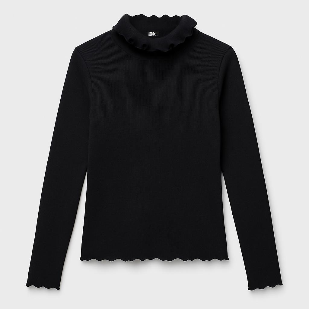 Questa adorabile maglia a maniche lunghe è un capo versatile e chic per le giornate più fresche! Realizzata in un tessuto morbido e caldo di colore nero profondo, presenta un delizioso colletto arricciato che aggiunge un tocco di eleganza al look quotidiano. I dettagli scallop lungo l'orlo e le maniche donano un aspetto raffinato e giocoso, perfetto per ogni piccola trendsetter. Nonostante sia un capo usato, si presenta in ottime condizioni, pronto per accompagnare le tue piccole in tutte le loro avventure. Un must-have per un guardaroba che ama lo stile!