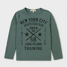 Questa maglia a maniche lunghe di LAGUIA è perfetta per i piccoli esploratori! Realizzata in un morbido tessuto verde oliva, offre comfort e stile. Il design presenta una grafica sportiva con “NEW YORK CITY” e stelle che infondono un tocco urbano. Ideale per le avventure quotidiane, si abbina facilmente a jeans o pantaloni. Nonostante sia un capo usato, si presenta in buone condizioni, pronta per accompagnare il tuo bambino in ogni occasione! Un'aggiunta fantastica al guardaroba di ogni giovane amante del gioco!