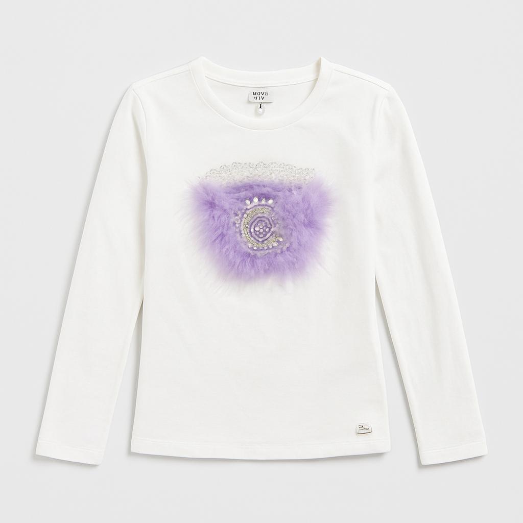 Questa adorabile maglietta a maniche lunghe è perfetta per le piccole fashioniste! Realizzata in morbido cotone bianco, è arricchita da un delizioso applicazione con piume viola e brillanti strass che catturano l'attenzione. Il suo taglio comodo e le maniche lunghe la rendono ideale per le fresche giornate primaverili o autunnali, mantenendo sempre un tocco di stile. Nonostante sia un pezzo usato, si presenta in ottime condizioni ed è pronta per nuove avventure! Un’aggiunta vivace e chic a qualsiasi guardaroba infantile!