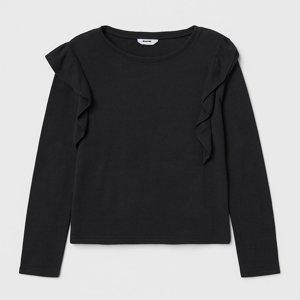 Questa elegante maglietta nera, ideale per le piccole fashioniste, porterà un tocco di stile in ogni guardaroba! Realizzata in un morbido tessuto, presenta un design semplice, ma sofisticato, con delicate rouches sulle spalle che aggiungono un dettaglio chic e giocoso. Le maniche lunghe la rendono perfetta per le giornate più fresche, mentre il taglio comodo permette libertà di movimento per ogni avventura. Nonostante sia un capo usato, è in ottime condizioni e pronta per essere indossata. Un’ottima scelta per creare look versatili, dalla scuola al tempo libero!