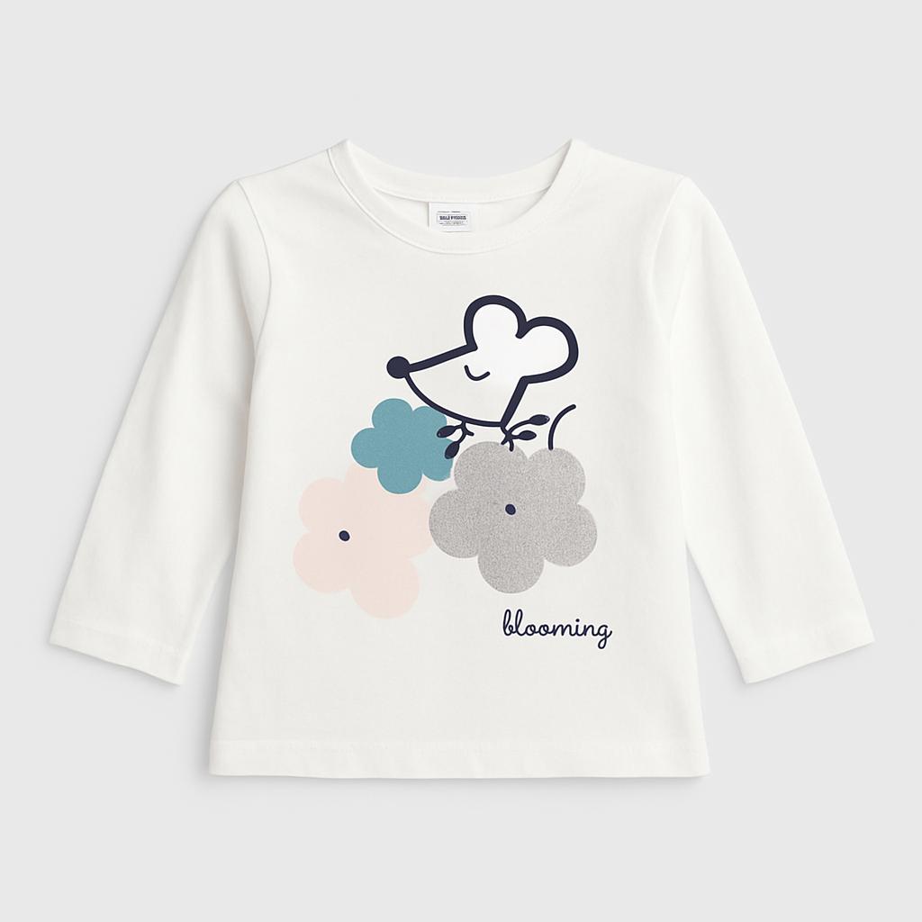 Questa adorabile maglietta a maniche lunghe è perfetta per le piccole sognatrici! Realizzata in morbido cotone bianco, presenta un grazioso design con un topolino stilizzato e fiori colorati in tonalità pastello. La scritta "blooming" aggiunge un tocco di dolcezza e gioia. È ideale per le fresche giornate primaverili o per strati sotto un cardigan nelle giornate più fresche. Nonostante sia un capo usato, si presenta in ottime condizioni, pronta a diventare il nuovo favorito nel guardaroba della tua piccola! Un must-have per ogni piccola fashionista!