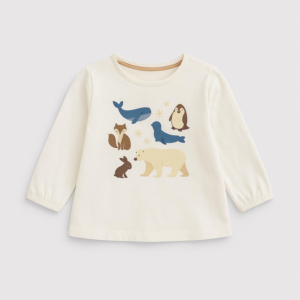 Questa adorabile maglietta a maniche lunghe è perfetta per i piccoli esploratori! Realizzata in morbido cotone bianco, porta un fresco tocco di natura con graziosi animaletti marini e terrestri stampati sul davanti. Con le sue maniche arricciate e il design comodo, è ideata per garantire libertà di movimento nei giochi. Nonostante sia un capo usato, mostra segni di amore e avventure, rendendola unica e speciale. Perfetta per ogni occasione, dalla scuola a una giornata al parco, è un must per il guardaroba dei tuoi bambini!