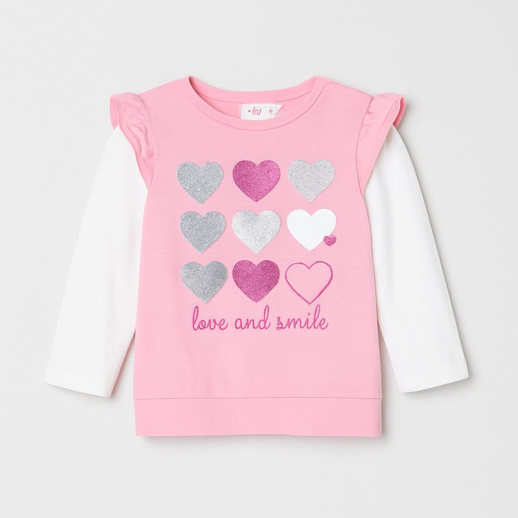 Questo adorabile pullover rosa di marca Benetton è perfetto per le giornate di gioco e allegria! Con maniche lunghe bianche, aggiunge un tocco di contrasto carino. La maglia è decorata con cuori brillanti in diverse tonalità, creando un effetto scintillante che farà innamorare ogni bambina. La scritta “love and smile” rende il look ancora più affettuoso e giocoso. Nonostante sia un capo usato, si presenta in ottime condizioni, ideale per esprimere il proprio stile con comfort e allegria. Un must-have per le piccole palladine!