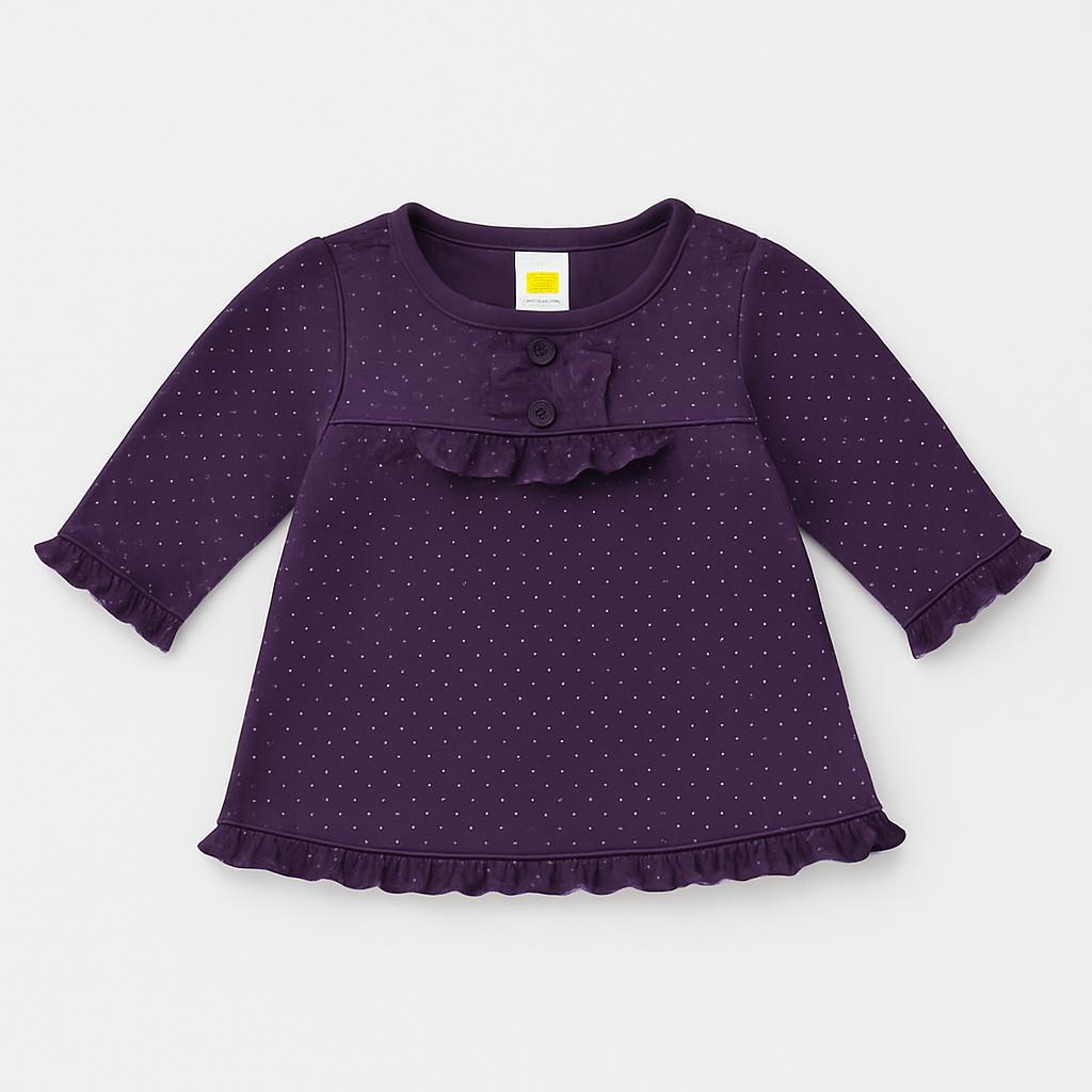 Questa adorabile maglietta a maniche lunghe in un delizioso color viola è perfetta per le piccole principesine! Realizzata in morbido cotone, presenta un elegante motivo a pois bianchi e un raffinato volant lungo il fondo. Il bottone decorativo sul davanti aggiunge un tocco chic e giocoso. Ideale per essere abbinata a jeans o leggings, è un capo versatile per le giornate di scuola o le uscite in famiglia. Nonostante sia un articolo usato, si presenta in ottime condizioni, pronta a dare un tocco di stile al guardaroba della tua bimba!