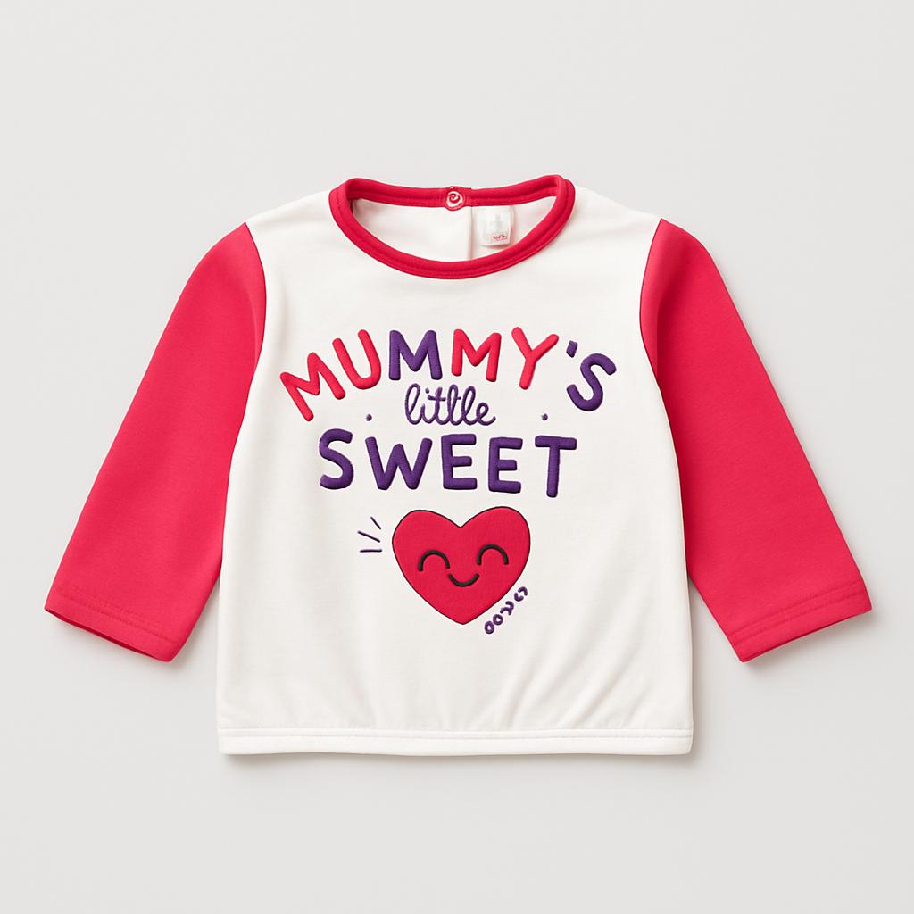 Questa adorabile felpa bicolore è perfetta per la tua piccola! Con maniche lunghe in un vivace rosa e un corpo bianco, è stata pensata per diffondere dolcezza. La scritta “Mummy's little sweet” accompagnata da un cuore colorato aggiunge un tocco affettuoso e giocoso. Realizzata in morbido cotone, questa felpa avvolge il tuo bambino in una coccola di calore e comfort. È ideale per le giornate più fresche, casual e versatile, perfetta per ogni avventura. Nonostante fosse usata, si presenta in ottime condizioni, pronta a diventare un preferito nel guardaroba!