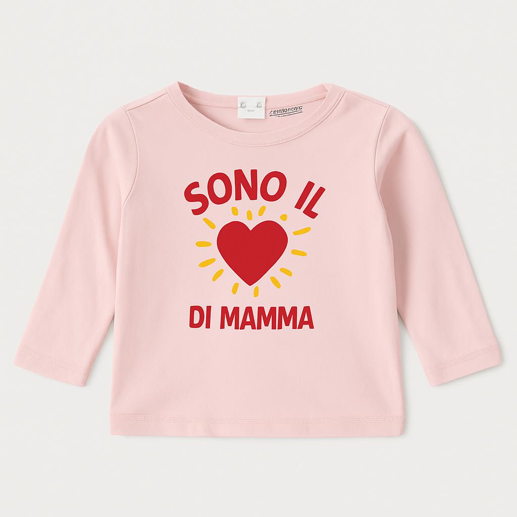 Questa adorabile maglietta a maniche lunghe in morbido cotone rosa è un vero inno all'amore materno! Con una vivace scritta "SONO IL ❤️ DI MAMMA" al centro, è perfetta per far brillare il sorriso della tua piccola. Il design semplice ma affettuoso la rende ideale per ogni occasione, da una giornata al parco a un pigiama party. Leggera e comoda, si adatta facilmente a qualsiasi outfit e, pur essendo di seconda mano, si presenta in ottime condizioni. Un capo che scalderà il cuore di ogni mamma e della sua piccola!