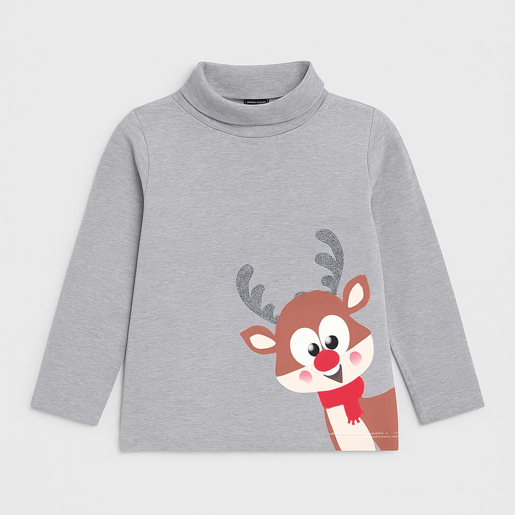 Questa adorabile maglietta grigia a maniche lunghe è perfetta per le giornate invernali! Con un simpatico design che presenta un renna affettuoso con un naso rosso e una sciarpa, questa maglietta farà sorridere ogni piccolo. Realizzata in morbido cotone, garantisce comfort e calore, ideale per avventure all’aperto o pomeriggi sul divano. Anche se usata, si trova in ottime condizioni e rappresenta un'ottima aggiunta al guardaroba invernale di ogni bimbo! Un capo versatile, perfetto per creare look festivi e giocosi!