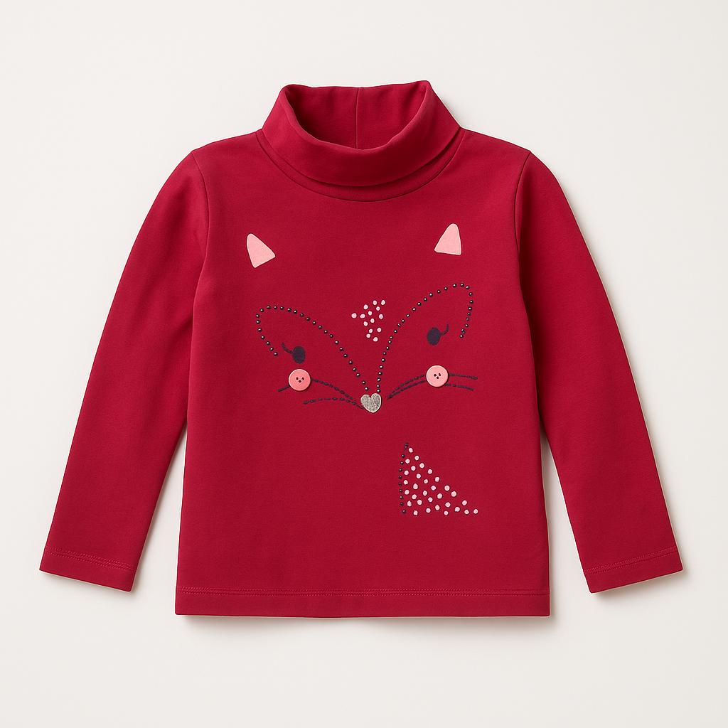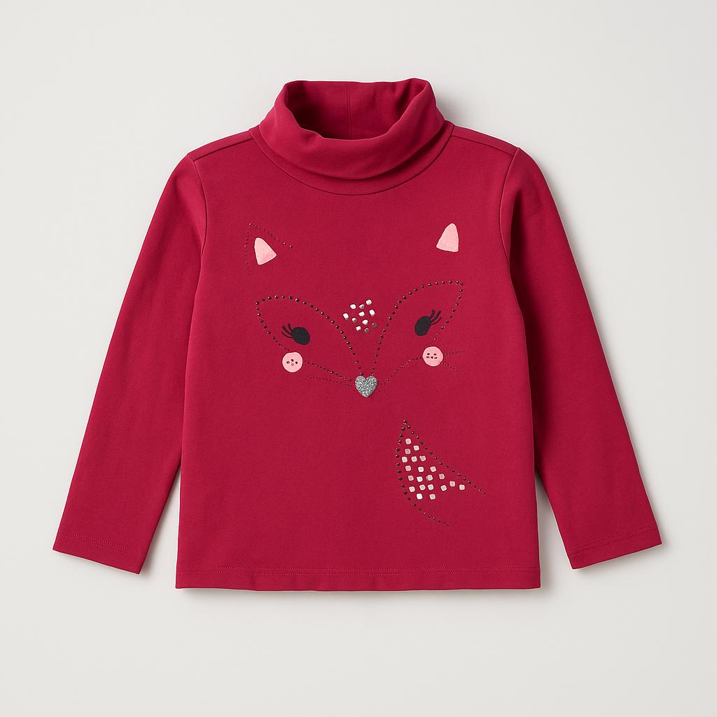 Questa deliziosa maglietta a maniche lunghe di un caldo color bordeaux diventerà il pezzo preferito nel guardaroba della tua piccola! Con un grazioso motif a gattino sul davanti, impreziosito da brillanti applicazioni, questa t-shirt è pensata per le piccole amanti degli animali. Il colletto alto offre comfort e stile, ideale per le fresche giornate autunnali. Nonostante sia un capo usato, si presenta in ottime condizioni, pronta per accompagnare ogni avventura quotidiana con un tocco di divertente originalità! Un must-have per ogni piccola trendsetter!