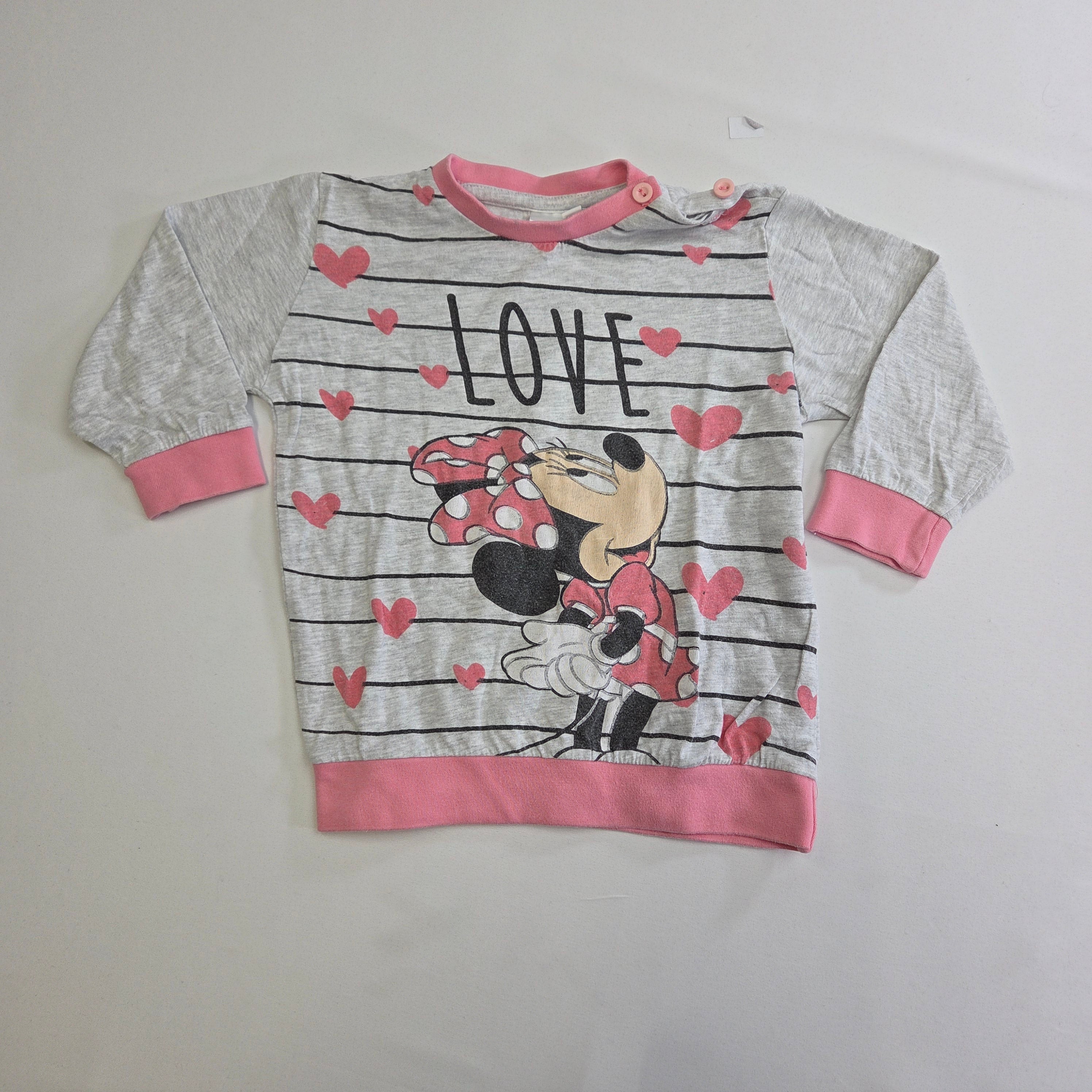 Questo adorabile maglione grigio con le maniche rosa è perfetto per le piccole amanti di Minnie! Decorato con strisce e cuoricini, presenta una dolce illustrazione di Minnie che esprime tutto l'amore del mondo. Le pratiche bottoniere sulle spalle facilitano l'inserimento, mentre il taglio comodo garantisce libertà nei movimenti. Realizzato in morbido cotone, è ideale per le giornate fresche. Anche se è un capo usato, si presenta in ottime condizioni ed è pronto a portare un sorriso nel guardaroba della tua bambina! Un must-have per ogni piccola fan!