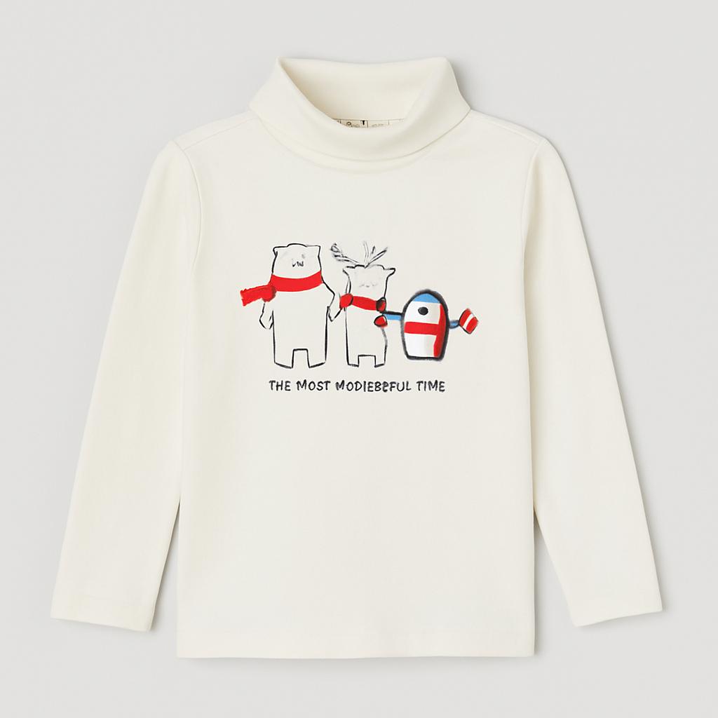 Questo adorabile dolcevita bianco è perfetto per le fresche giornate invernali! Realizzato in morbido cotone, presenta un delizioso motivo con un orsetto polare, una renna e un pinguino, tutti intenti a festeggiare. La frase “THE MOST WONDERFUL TIME” aggiunge un tocco magico e festoso.
